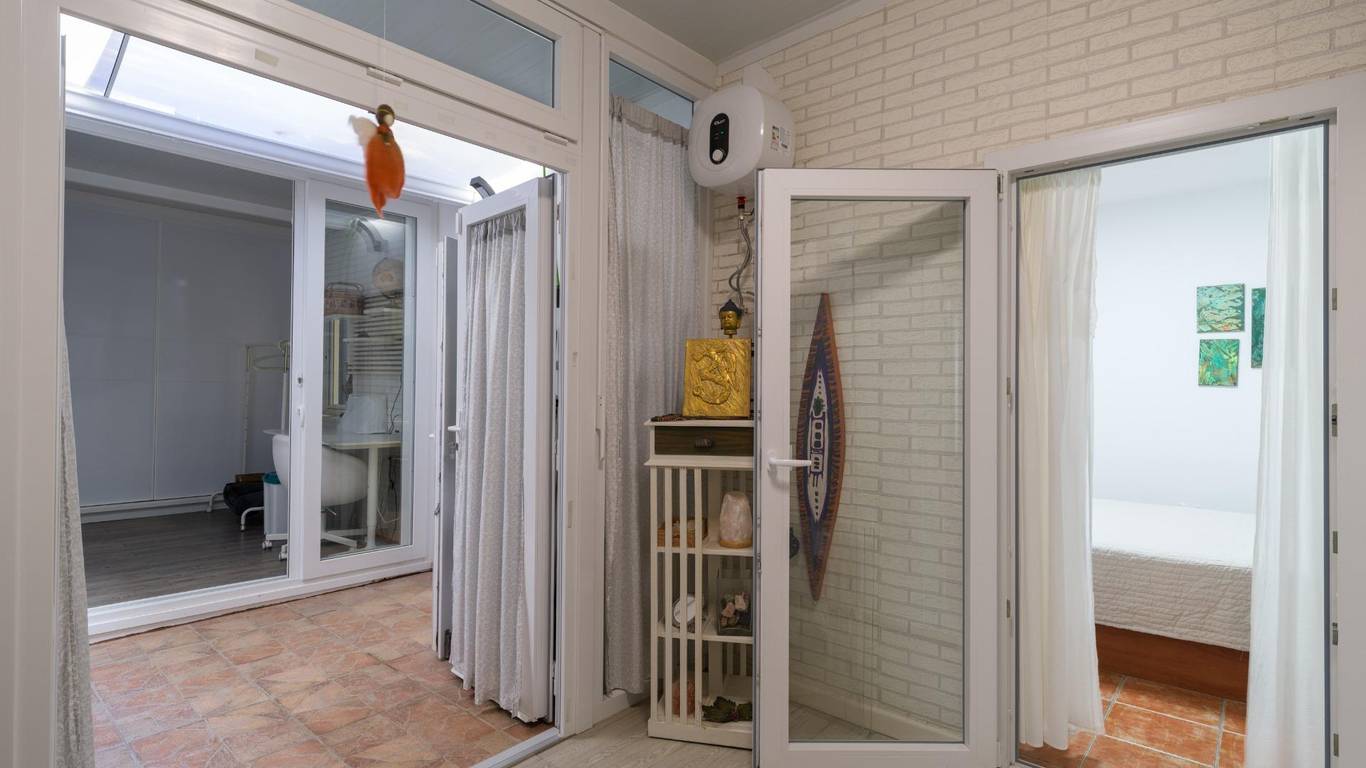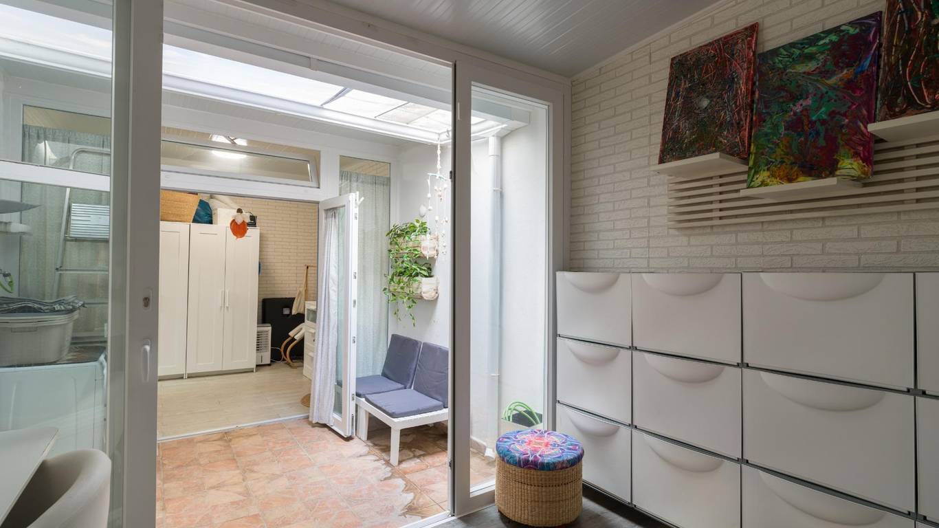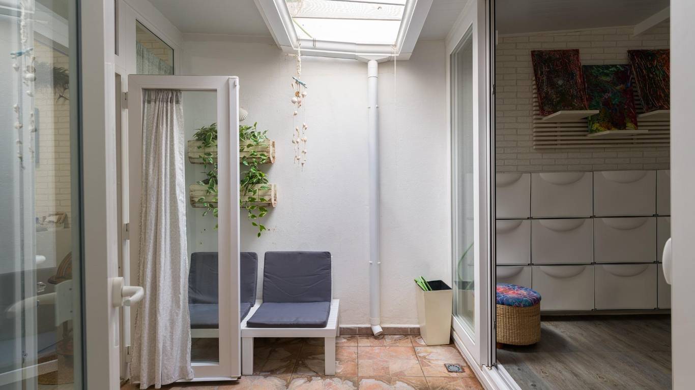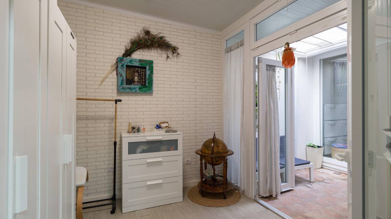 Die Immobilie verfügt über eine bebaute Fläche von 128 m2 und ist aufgeteilt in zwei Doppelschlafzimmer (eines davon mit Ankleideraum und Einbauschränken), ein weiteres Einzelzimmer, zwei komplette Badezimmer, eine separate Küche mit Zugang zu einem praktischen Hauswirtschaftsraum sowie ein sehr geräumiges und lichtdurchflutetes Wohn-Esszimmer mit großen Fenstern.