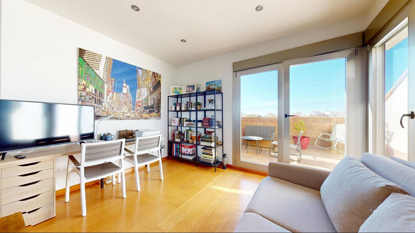 Si subes a la última planta, te encontrarás con una sala polivalente que puedes personalizar según tus necesidades y gustos. Además, esta habitación tiene acceso directo a un fabuloso solarium, donde podrás disfrutar de vistas panorámicas y momentos de paz y tranquilidad.