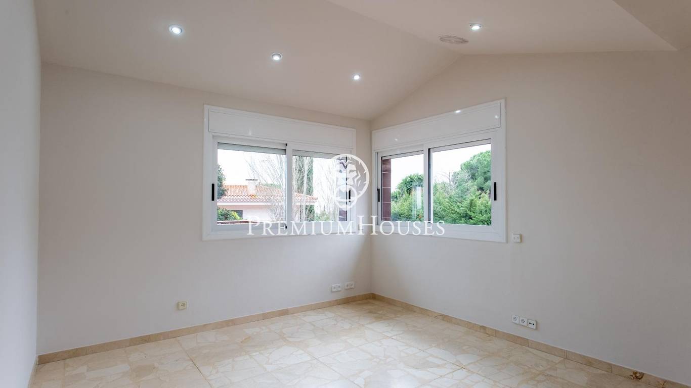 On a spacious 1,061 m plot, surrounded by greenery and in a prime location in Alella, you will find this detached house designed for those who value space, tranquillity and proximity to both the sea and the city of Barcelona.The property is arranged over three floors and offers a solid foundation with multiple options for personalisation. On the lower level, there is a large garage with space for three vehicles, as well as an adjoining area that is currently unfinished, ideal for developing a complementary space according to the needs of the new owner.The main area of the house is designed for everyday living. Here you will find a spacious living-dining room with double-height ceilings that provide natural light and a very pleasant feeling of spaciousness. The kitchen, located on this same level, is yet to be fitted out, providing the opportunity to design it from scratch according to the needs and style of the new owner. This floor is completed by two bathrooms and a utility room for installations.The upper floor is the private area, consisting of four bedrooms, a full bathroom and a master bedroom with en-suite bathroom, providing a functional and comfortable layout for a family.The exterior offers a very enjoyable natural setting, with a large garden, private swimming pool and separate access to the property from two different streets, both for pedestrians and vehicles, adding value in terms of comfort and privacy.A property with great potential in one of the most sought-after areas of the Maresme, ideal for those looking for a spacious and customisable home in a peaceful and natural environment.