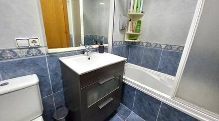Das Badezimmer ist mit Dusche und Fenster ausgestattet. Die Wohnung ist möbliert. Die Küche ist komplett ausgestattet und möbliert, inklusive Induktionskochfeld und folgenden Geräten: Kühlschrank, Geschirrspüler, Mikrowelle, Waschmaschine und Backofen.