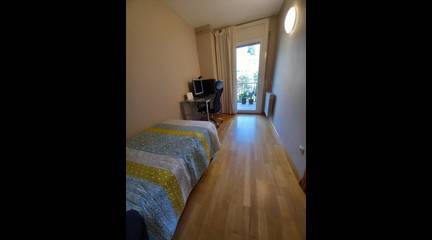 Die 58 m große Wohnung ist nach Nordwesten ausgerichtet und bietet einen schönen Ausblick. Sie verfügt über zwei Schlafzimmer: ein Doppelzimmer mit Einbauschrank und Morgenlicht sowie ein Einzelzimmer mit Zugang zum Innenhof und Nachmittagslicht.