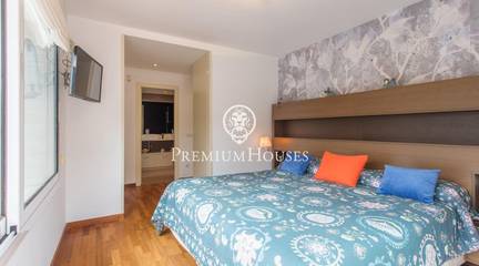 Built on plot of 640 m, with garden and swimming pool. In the underground floor, there is a garage of 125 m, with capacity for 4 cars with laundry area and storage room. On the ground floor, we enjoy the living-dining room of 40 m with fireplace and access to the porch, garden and swimming pool. The kitchen, office, with central island, enjoys views of the garden and swimming pool. On the ground floor there is a bedroom suite and a guest toilet. On the upper floor, master suite with bathroom, dressing room and access to terrace, two bedrooms with full bathroom, multipurpose open area for office or games area. There is a lift from the garage. The house is located in a very quiet area one minute from the golf course and 5 minutes from the town centre. Unbeatable views.