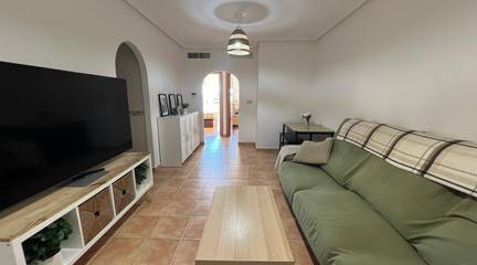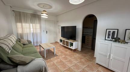 Welcome to this bright and inviting apartment in Formentera del Segura ideal as a permanent home or a holiday retreat.It features two comfortable bedrooms, a full bathroom, a separate guest toilet, and a spacious living room that opens onto a sunny terrace.Enjoy stunning views of the lush green fields from the balcony in the bedrooms.The 20 m private solarium is perfect for relaxing under the sun or enjoying quiet evenings outdoors.A private garage space of 21 m is included, and residents have access to a beautiful communal swimming pool.Peaceful surroundings, natural beauty, and all the comfort you need