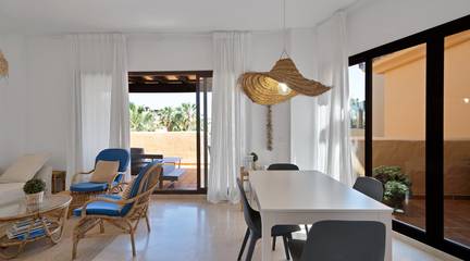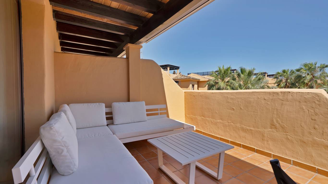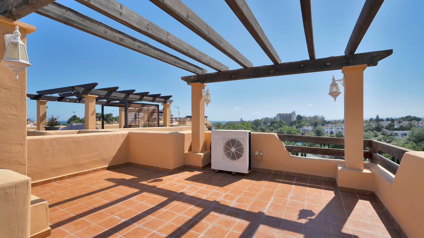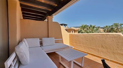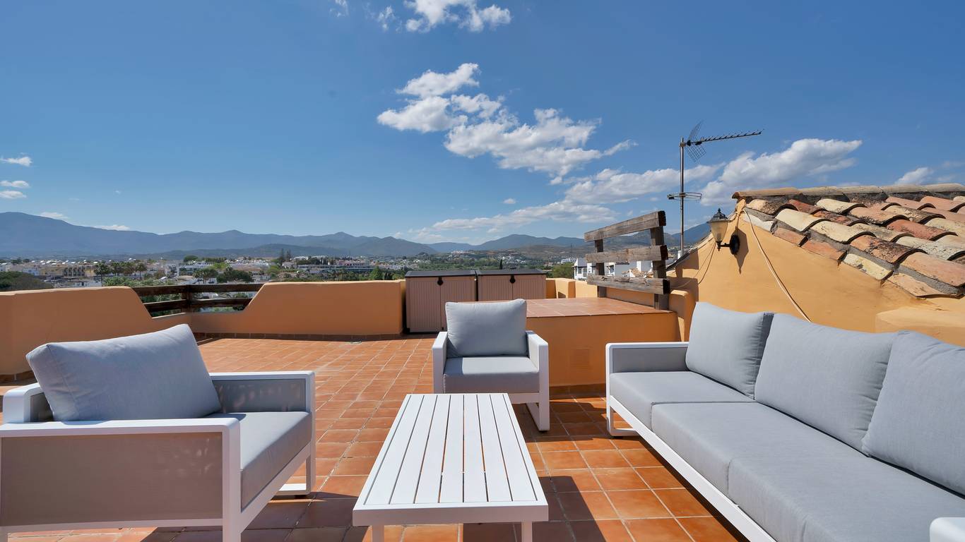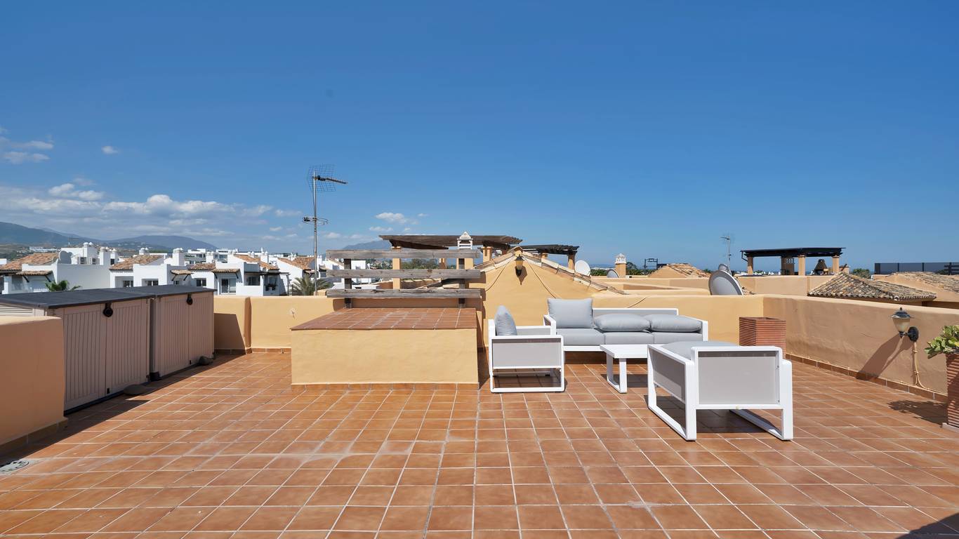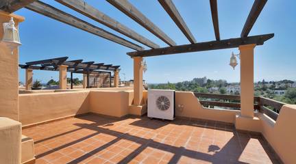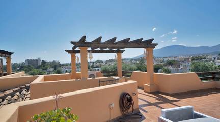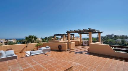 Elegant Penthouse with Panoramic Sea Mountain Views in Terrazas de Costalita EsteponaA Unique Opportunity to Own in One of the Costa del Sol's Most Sought-After Coastal CommunitiesLocated in the prestigious Terrazas de Costalita, a gated beachfront development in the highly desirable Costalita area of Estepona, this elegant and bright 2-bedroom penthouse offers the perfect blend of comfort, luxury, and Mediterranean charm. In Costalita, life moves at the perfect pace quiet mornings on the beach, afternoons by the pool, and evenings enjoying fine dining nearby.Terrazas de Costalita is part of the exclusive Costalita community, renowned for its direct beach access, lush tropical gardens, and 24-hour gated security. Residents enjoy a serene environment with walking paths, large communal pools, and proximity to all key amenities including: Renowned beach clubs, restaurants, and golf courses The prestigious Villa Padierna Beach and Padel Club and five star Mett Hotel Easy access to Estepona, Marbella, and Puerto Banús Just 45 minutes from Málaga International AirportFrom the moment you step inside, youre greeted by sunlight flooding through large windows, illuminating the spacious open-plan living and dining area. The atmosphere is one of calm and sophistication, with access to a private terrace overlooking the lush tropical gardens, serene swimming pool, and glimpses of the sea. Its the kind of place that invites morning coffees, lazy afternoons, and evening dinners under the stars.A second, more intimate terrace connects to a private rooftop solarium via a staircase a true jewel of the home. Up here, youll find breathtaking panoramic views of the Mediterranean coastline and the surrounding mountains. Whether youre sunbathing in privacy, hosting friends for cocktails, or simply watching the sunset in peace, this space elevates the experience of home to something extraordinary.The two terraces, including the stunning rooftop solarium, offer a total of 105 sqm of outdoor living spaceThe kitchen is separate and fully equipped, with generous cabinetry, natural light, and its own beautiful views a delightful space for anyone who enjoys cooking.The home offers two well-appointed bedrooms. The master suite includes its own en-suite bathroom, while the second bedroom enjoys close access to another large bathroom. Both rooms are equipped with built-in wardrobes, ensuring plenty of storage.Additional features include: Central air conditioning (hot and cold) Private underground parking space Secure storage roomYour Mediterranean Lifestyle AwaitsWhether you're searching for a luxury getaway, a smart investment, or your forever home by the sea, this elegant penthouse in Terrazas de Costalita is a rare find that delivers on every level.Contact us today to schedule a private viewing and experience this exceptional property for yourself.The abbreviated information document is available to you. Expenses: Taxes (ITP or VATAJD) Notarial and registration expenses.NG1.