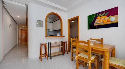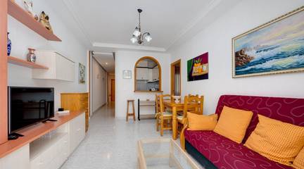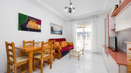 Discover this wonderful apartment located on the first floor, ideal for enjoying a peaceful life by the sea. It consists of two cozy bedrooms that offer perfect rest after a sunny day. The east-facing terrace is perfect for having breakfast while basking in the first rays of sun or relaxing in the afternoons. Its equipped American kitchen combines functionality and style, being an ideal space to prepare delicious family meals or share unforgettable moments with friends. The full bathroom adds comfort to your daily routine, and its privileged location just 600 meters from beautiful Playa del Cura ensures quick access to days filled with sand and sea. Additionally, you will have all necessary services within reach: supermarkets, restaurants, and public transport are very close making it even more attractive to live here. Don't miss this unique opportunity your new coastal home is waiting for youTHE PRICE DOES NOT INCLUDE EXPENSES OR TAXES.