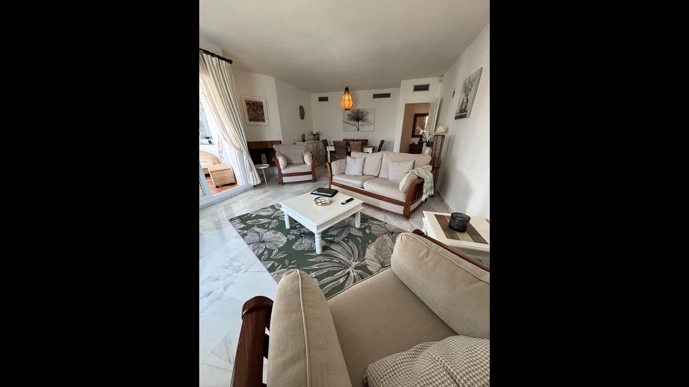 Exclusive apartment in Los Naranjos de Marbella Long Term Rental Discover this charming apartment located in one of Marbellas most sought-after areas, within the prestigious Los Naranjos de Marbella development, at the entrance to the renowned Golf Valley. A privileged location that combines residential tranquillity with proximity to the main points of interest: Just 2 minutes walk from a supermarket and restaurants 20 minutes on foot (4 minutes by car) to Puerto Banús 8 minutes by car to Marbellas Old Town 4 minutes walk to Aloha College and 10 minutes to the prestigious La Roche Hospitality School Very close to the Golden Mile with its iconic hotels such as Puente Romano, Marbella Club and Nobu, as well as exclusive branded developments by Fendi and Dolce amp Gabbana The Property This bright apartment with south-west orientation offers comfortable, modern living filled with natural light: Spacious living and dining area with direct access to a spectacular terrace Large terrace fitted with glass curtains, perfect for year-round use and fully openable in summer Two double bedrooms with built-in wardrobes, the master bedroom en suite Fully fitted kitchen with new appliances and a covered utility area providing additional storage space Renovated bathrooms with modern finishes Open views over the communal swimming pool and tropical gardens The Development Gated and very quiet community surrounded by well-maintained tropical gardens Large communal swimming pool, perfect for relaxing during the warmer months Unassigned communal parking with plenty of spaces always available Although the building does not have a lift, access to the penthouse is convenient thanks to wide, easy stairs Rental Conditions Available for long term rental Solvent tenants with proof of income required Two months deposit plus six-monthly advance payments (non-negotiable) This apartment combines an unbeatable location, practical design and a peaceful setting, making it one of the best rental opportunities in Marbella. A property that will not remain available for long. ERE