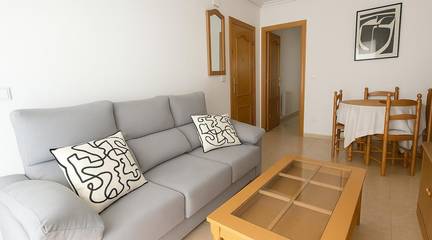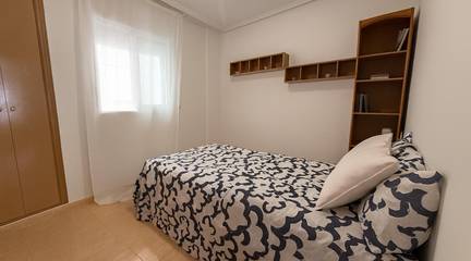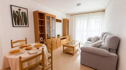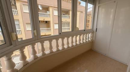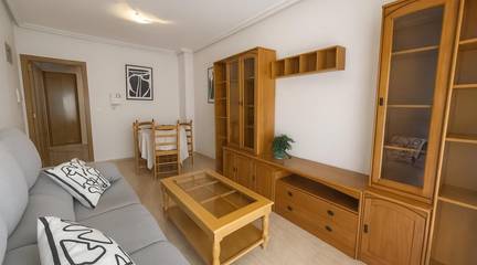 2 bedroom apartment close to beach with a pool in Torrevieja. Beautiful apartment in Torrevieja, it is located on the street La Loma, 44, in 600m from the beach del Cura. It has a spacious living room with a nice terrace, 2 bedrooms, separate kitchen and a bathroom.