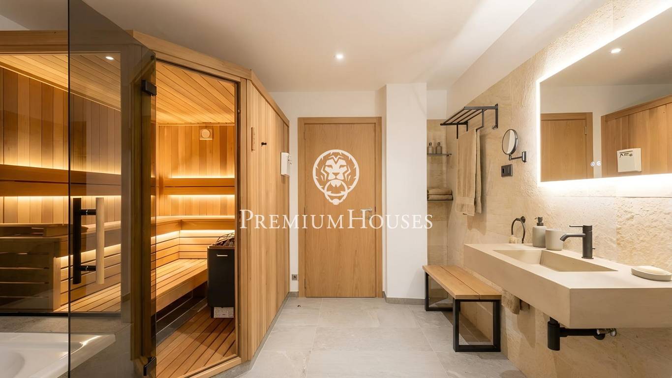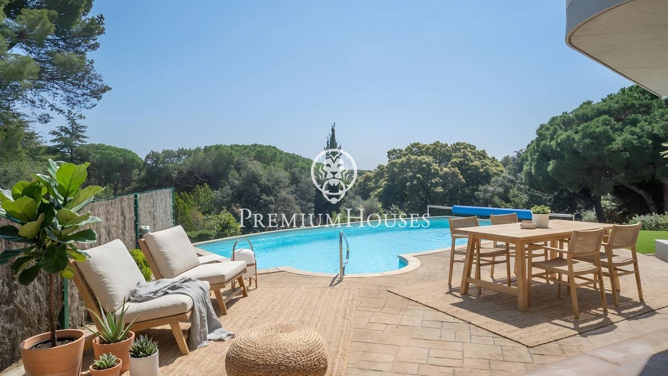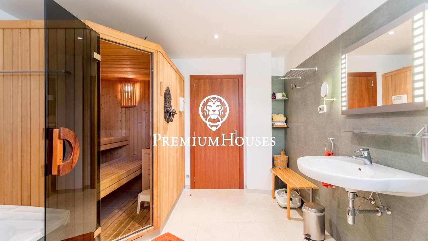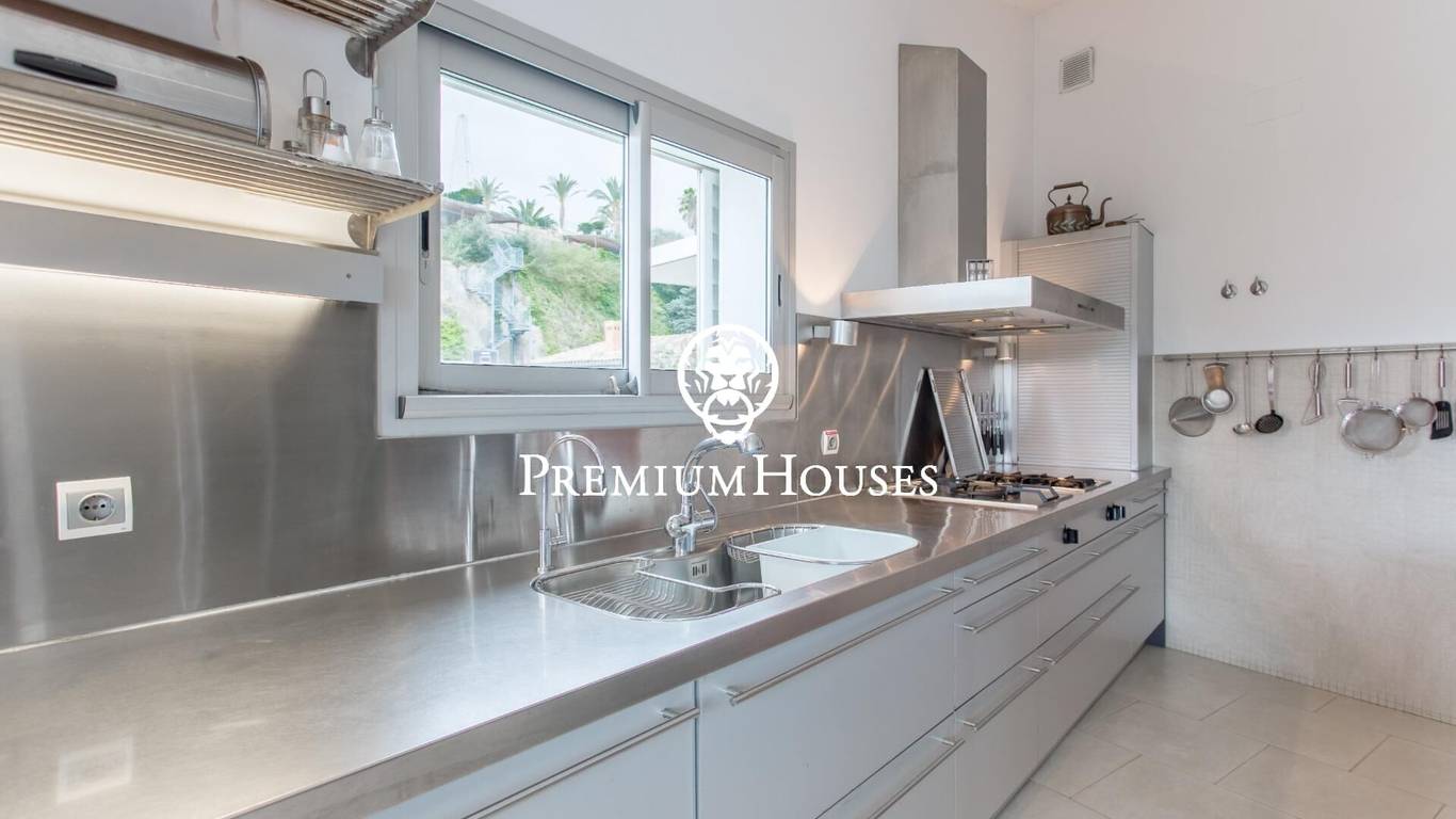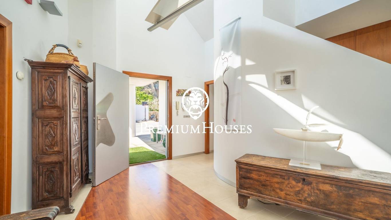 Presentamos una espectacular propiedad de diseño contemporáneo, ubicada en la prestigiosa urbanización de Rocaferrera, en Sant Andreu de Llavaneres. Esta zona privilegiada del Maresme es sinónimo de exclusividad, tranquilidad y calidad de vida, a tan solo 30 minutos de Barcelona y con fácil acceso a campos de golf, puertos deportivos, colegios internacionales y todo tipo de servicios.La vivienda, construida por el arquitecto Dr. Guillem Carabí Besós, destaca por su diseño elegante y funcional, integrándose armónicamente en una parcela de 2.155 m con vistas al mar absolutamente impresionantes. Con 478 m construidos, esta casa ha sido diseñada para disfrutar del máximo confort, eficiencia energética y conexión con el entorno natural.Desde el primer momento, la propiedad impresiona con un recibidor de 24 m, de techos altos y una espectacular cristalera que inunda el espacio de luz natural. Este acceso marca el tono de lo que viene: amplitud, diseño y elegancia en cada rincón.La cocina de 23 m, con isla central y equipada con electrodomésticos de alta gama, se conecta con fluidez con el salón-comedor de 56 m, que incorpora una chimenea y grandes ventanales con salida directa a la terraza orientada al sur, desde donde se disfrutan vistas panorámicas al mar Mediterráneo.La suite principal, ubicada en la misma planta, incluye vestidor y baño completo con ducha y bañera. Su diseño garantiza privacidad, amplitud y máxima comodidad. En esta misma planta se encuentran también un despacho ideal para el teletrabajo, un aseo de cortesía y una zona de lavandería con acceso independiente.La planta inferior alberga una habitación doble con armarios empotrados, un baño completo con sauna, una sala polivalente perfecta como sala de estar, gimnasio o cine en casa, que se podría destinar a ser otra magnifica habitación doble. Además hay una habitación destinada a trastero y una sala de máquinas perfectamente equipada. Desde esta planta se accede directamente al jardín, terraza chill out y a la impresionante piscina infinity, con vistas despejadas al mar.En el exterior, la vivienda ofrece una plaza de aparcamiento cubierta adicional, y espacio para aparcar hasta 10 vehículos dentro de la finca. Junto al garaje cubierto, se encuentra otra sala polivalente que puede adaptarse como oficina, estudio, taller o espacio adicional según las necesidades.El jardín ha sido diseñado con vegetación autóctona, zonas chill-out, terrazas y espacio para instalar una barbacoa o cocina exterior.Características adicionales destacadas:Sistema de calefacción por suelo radiante.Placas solares con una potencia de 7,5 kW.Batería Sonnen de almacenamiento energético.Orientación sur, ideal para luz natural todo el día.Sistema de ósmosis para agua potable.Máquina descalcificadora.Sistema de alarma y persianas motorizadas.Una propiedad única que combina diseño, eficiencia energética, privacidad y una ubicación envidiable. Ideal para quienes buscan un estilo de vida exclusivo rodeado de mar, bosque y arquitectura de alto nivel.