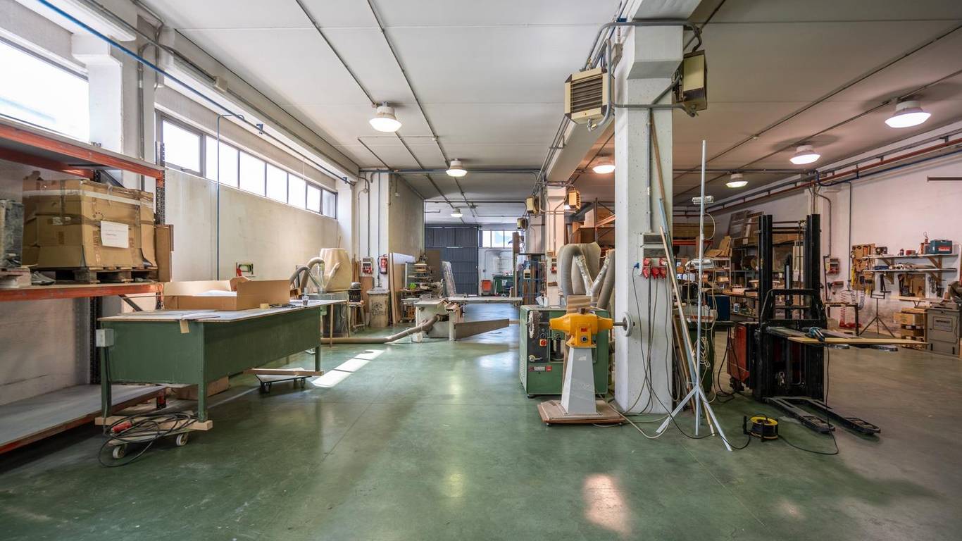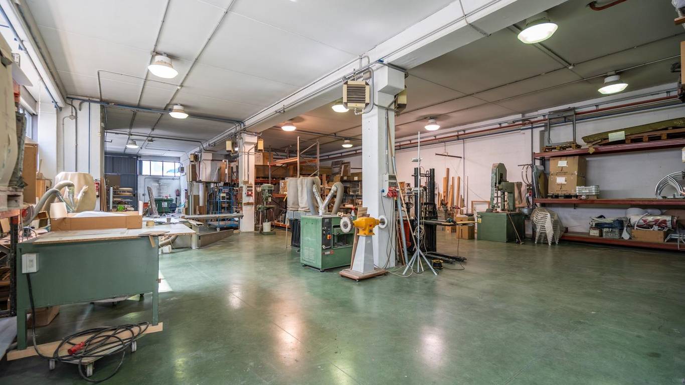 Actualmente dedicada a la fabricación de muebles, la nave dispone de zonas diferenciadas para cada etapa del proceso productivo, aunque su configuración permite transformarla fácilmente para uso logístico, almacén, oficinas, distribución, comercio mayorista u otros sectores industriales. En la planta baja encontramos un taller completamente operativo, equipado con maquinaria, con acceso directo desde el exterior mediante puerta de grandes dimensiones, lo que permite la entrada y salida fluida de mercancías. Además, cuenta con una segunda entrada por rampa que comunica con el garaje del sótano, facilitando el movimiento interno de carga y descarga.