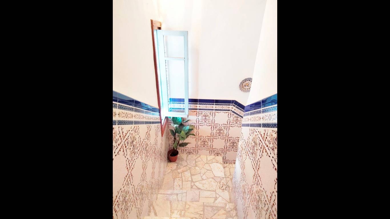 En la planta baja de la vivienda encontrarás una amplía entrada y distribuidor, salón, dos dormitorios, baño completo con ducha, una patio cubierto mediante el que se accede a la amplia cocina con suficiente espacio para disponer un comedor y cuarto de estar en ella, y escaleras para acceder al trastero de la planta superior, así como la salida al patio de la vivienda en el que encontramos un aseo. Desde el patio podemos acceder a la calle y, como ya hemos comentado, también podemos acceder directamente al solar anexo que cuenta con salida independiente a la calle. Este solar tiene unas edificaciones usadas como almacenes, aunque la mayoría de la superficie está natural.
