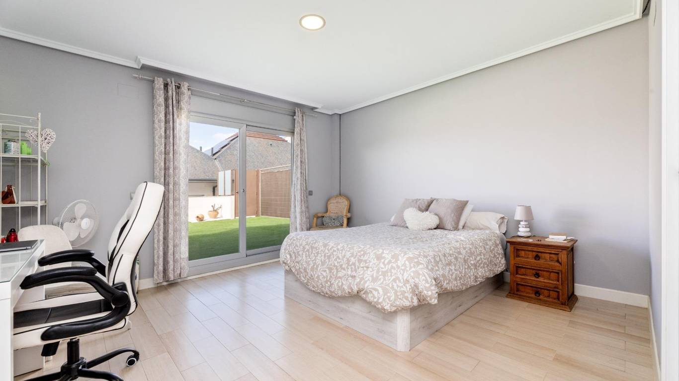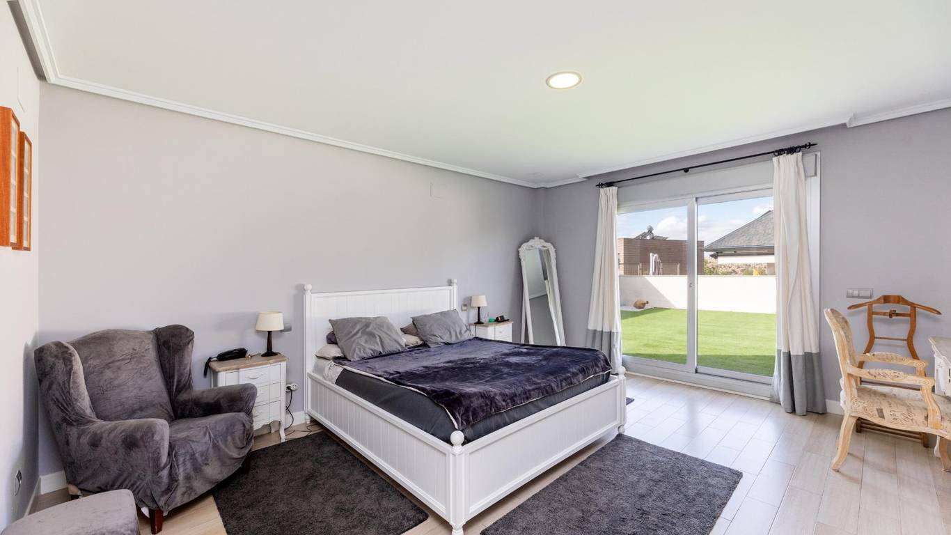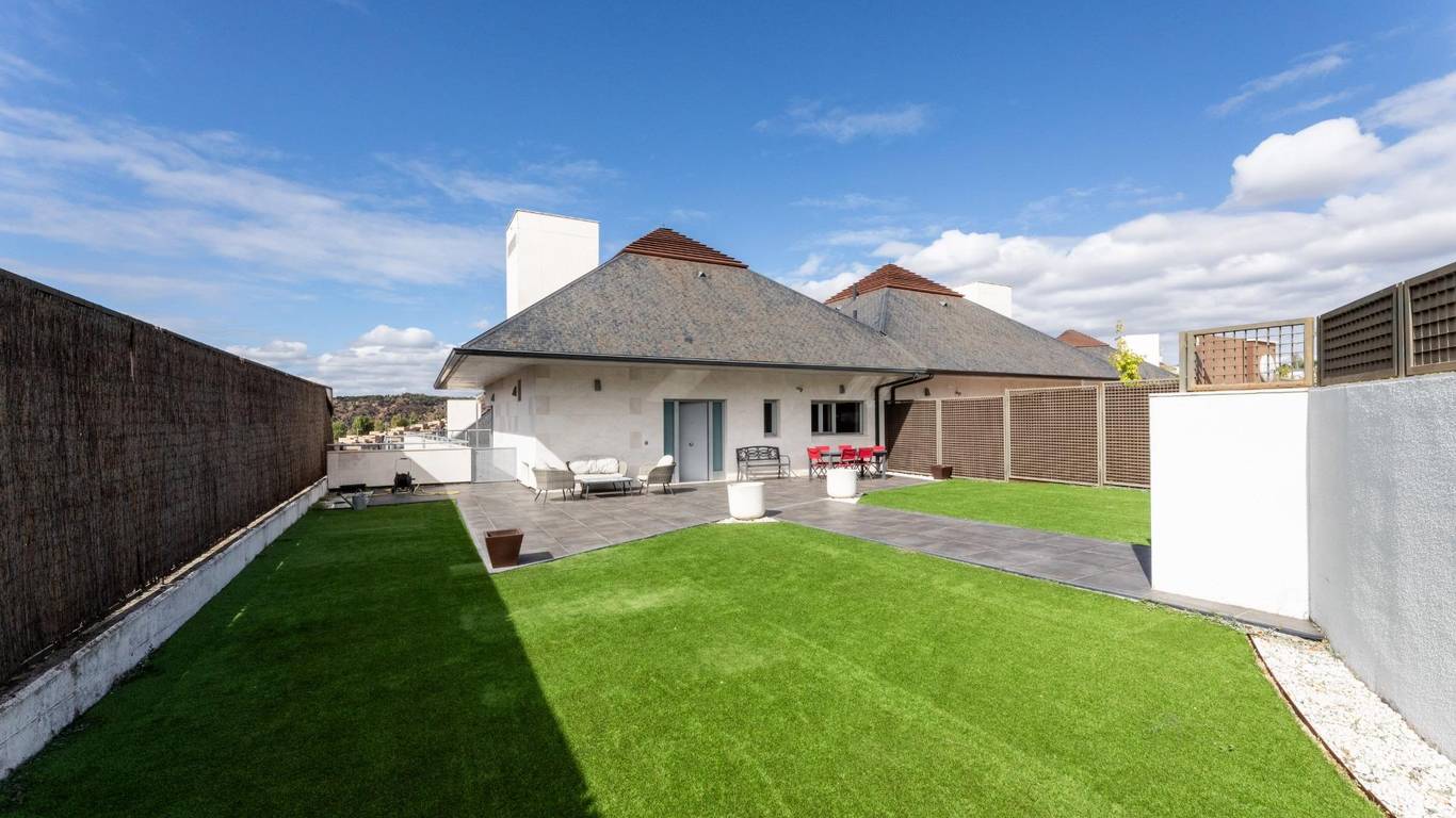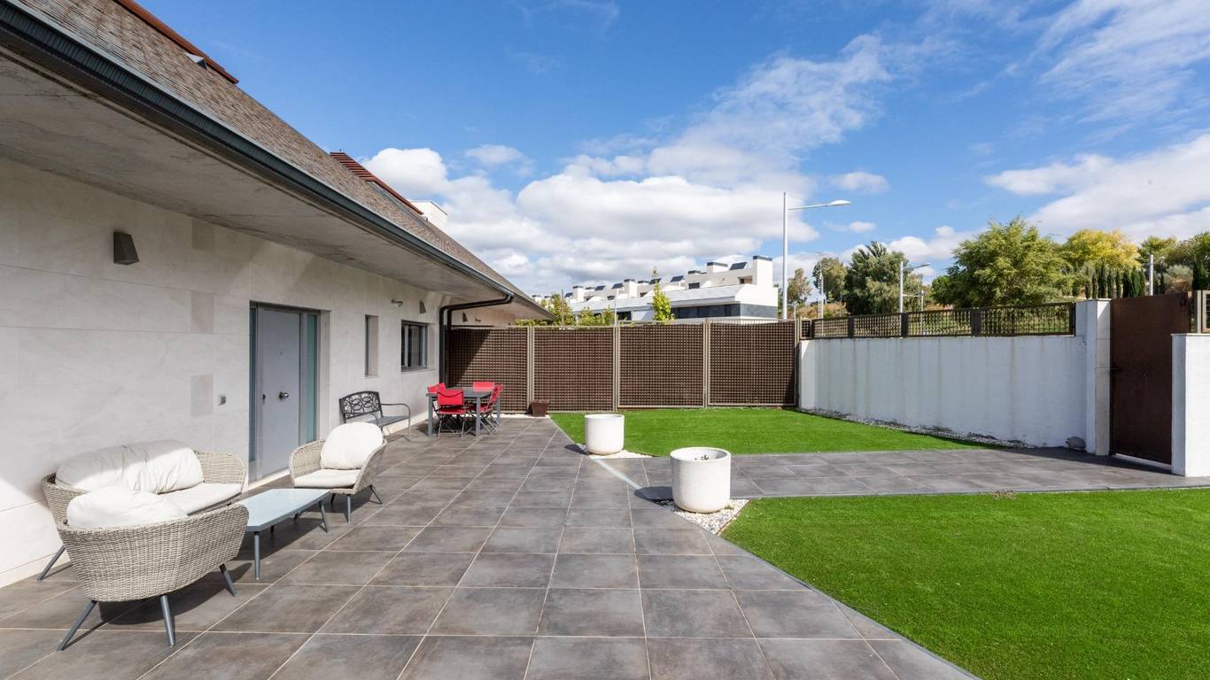 La vivienda dispone de un elegante jardín de acceso en la parte delantera, una generosa terraza trasera ideal para reuniones y momentos de relax al aire libre, y un jardín en la planta baja, accesible desde los cuatro dormitorios, que brinda un entorno íntimo, sereno y directamente vinculado con la naturaleza.