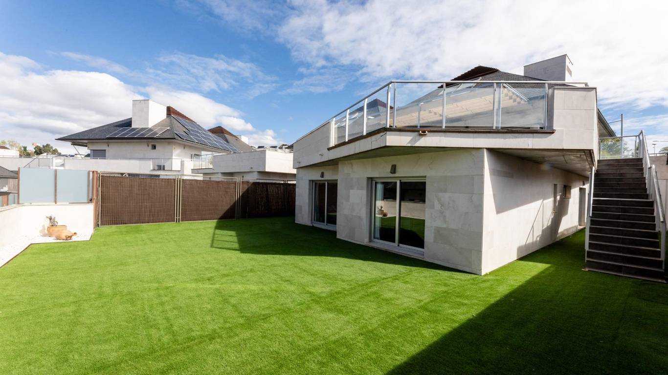 Situado en una de las zonas más codiciadas de Torrelodones, dentro de la prestigiosa urbanización privada La Hacienda V, se encuentra este impecable chalet adosado de cuatro plantas. Una propiedad que destaca por su diseño cuidado, materiales de alta gama y una distribución funcional, pensada para ofrecer confort, privacidad y estilo en un entorno natural privilegiado, a escasos minutos de Madrid.