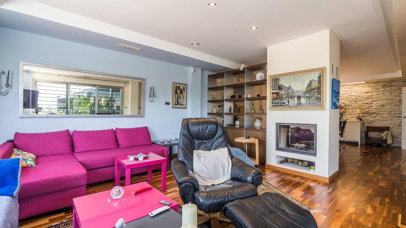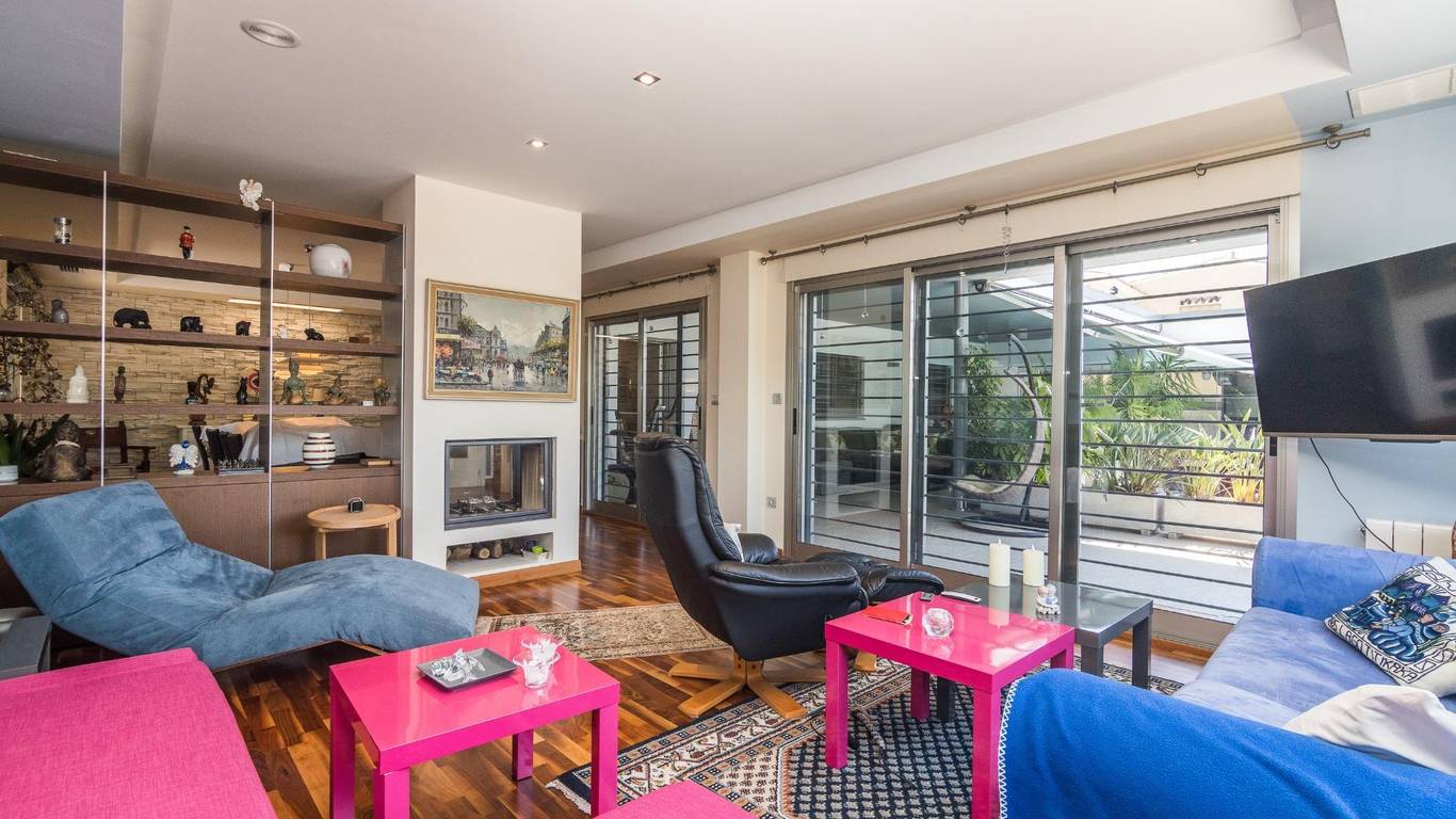 Dispone de amplio salón con chimenea cerrada tipo casete con doble cristal para que puedas relajarte viendo el fuego desde cualquier parte del salón.