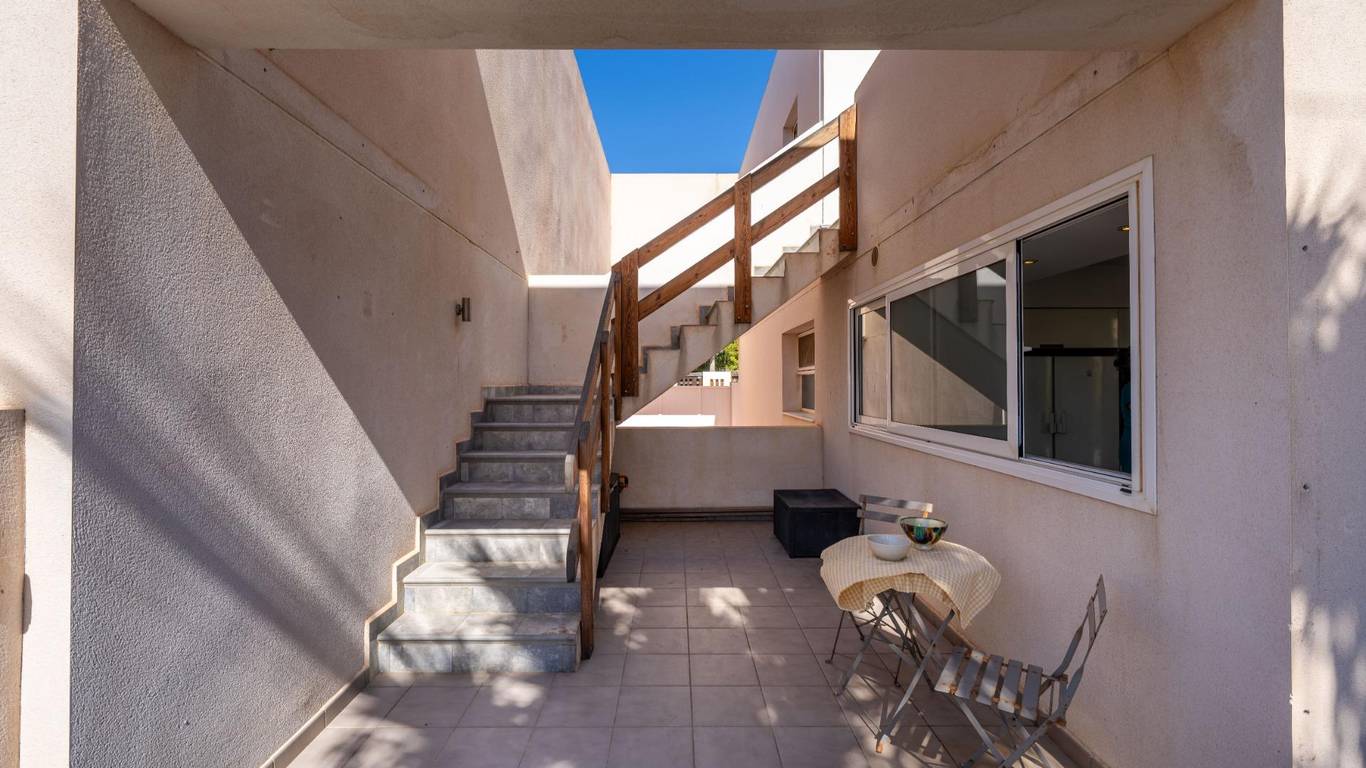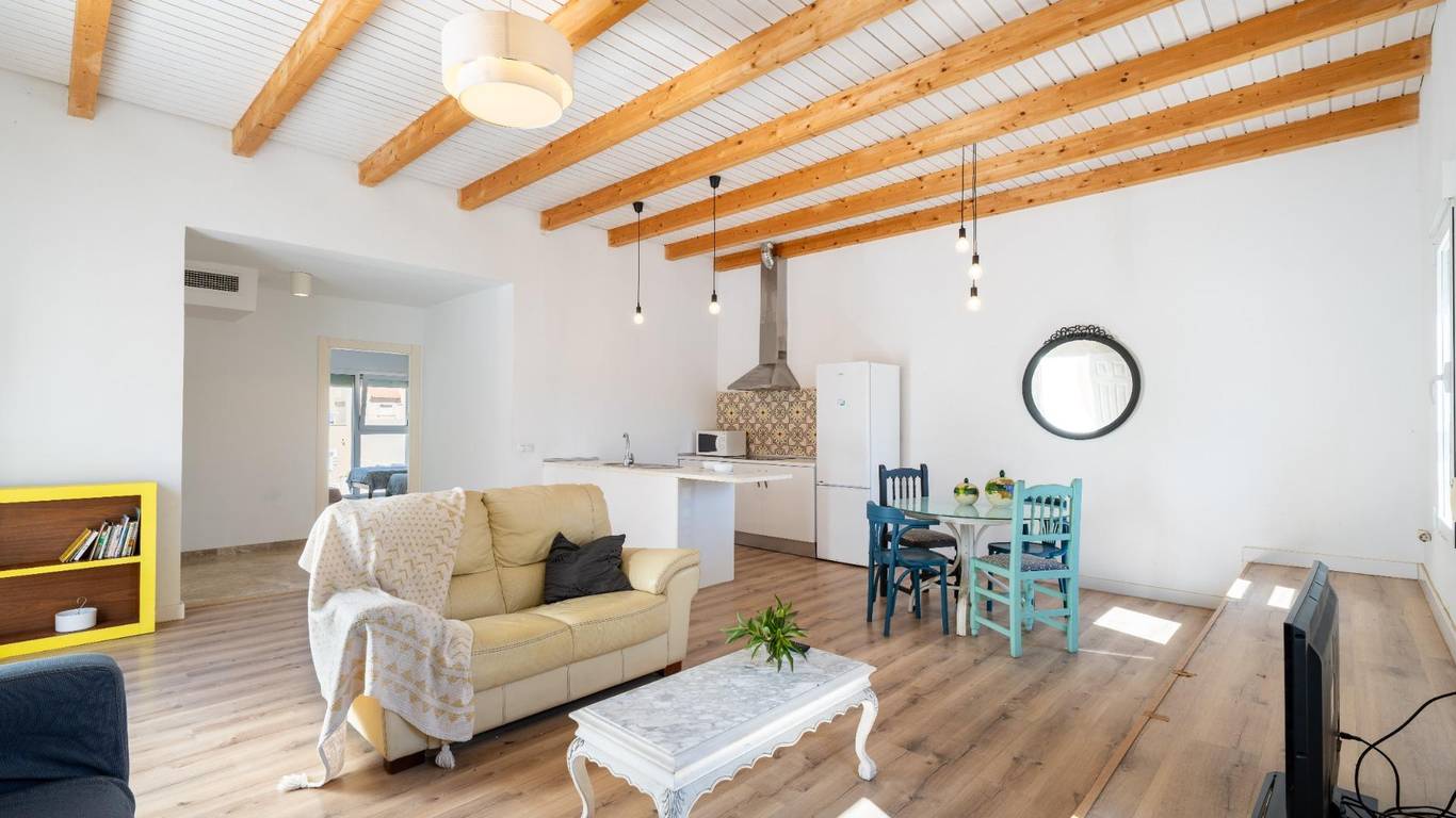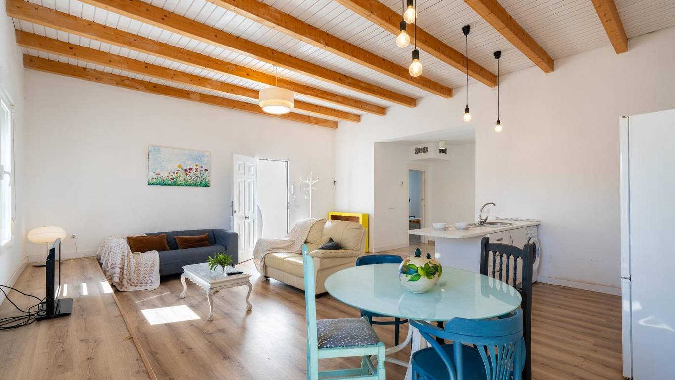 Y arriba, la sorpresa: un apartamento independiente con salón, cocina, dos dormitorios y una terraza privada.