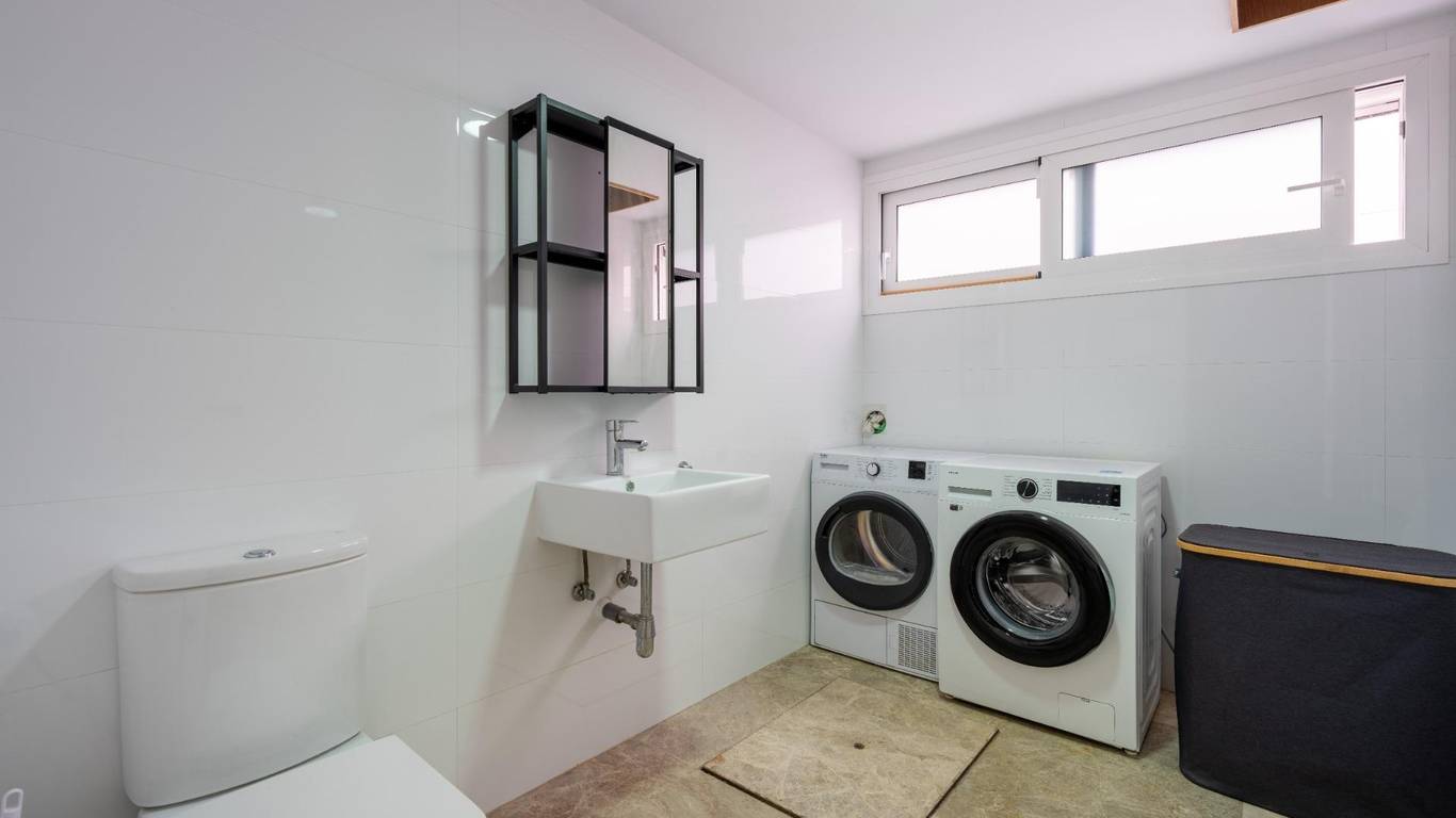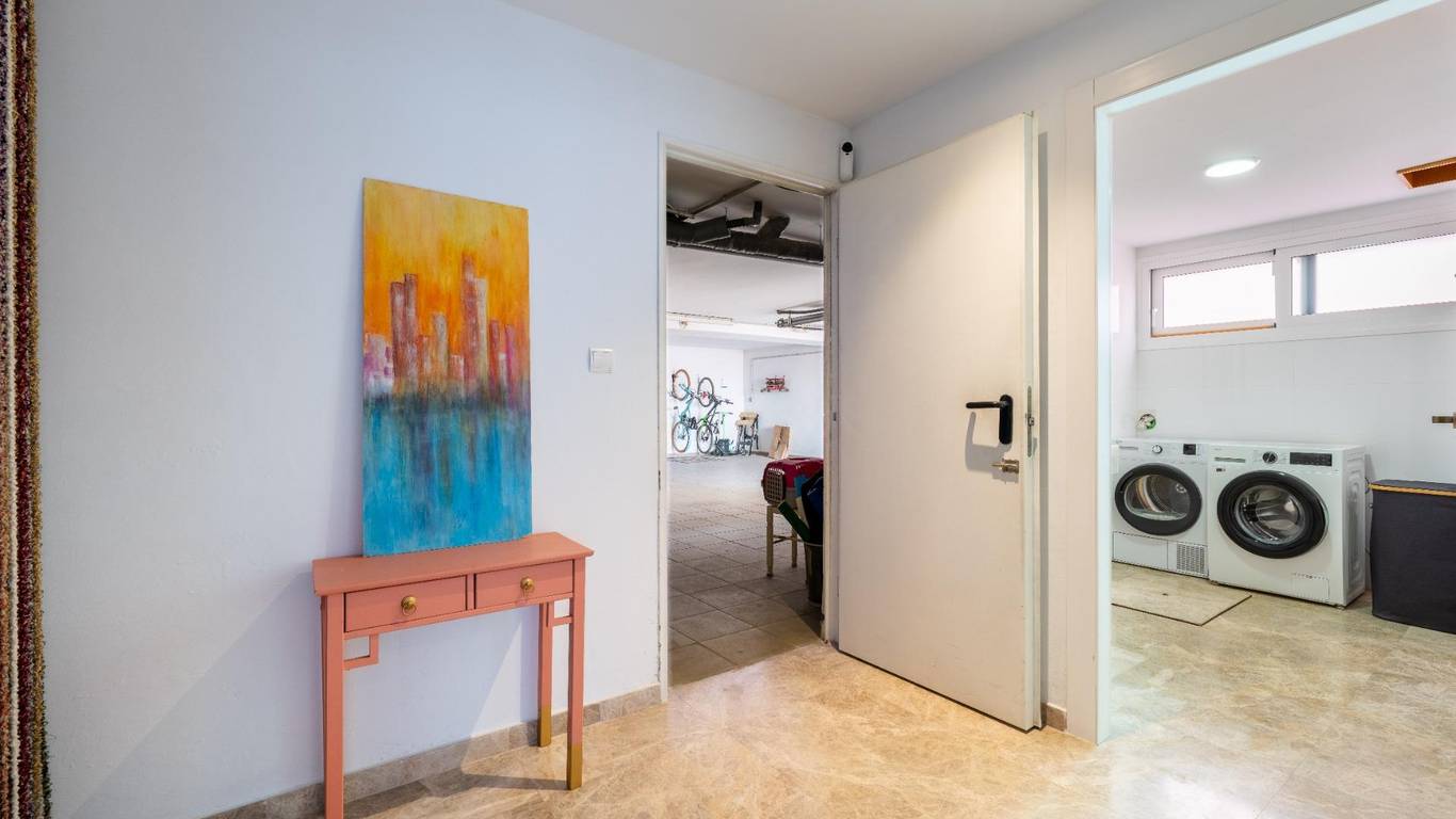 Abajo, un espacio más íntimo, con dos dormitorios dobles, acceso a un patio privado y un baño con lavandería. Además el garaje de 120 m ofrece mil posibilidades: guardar, crear, transformar...
