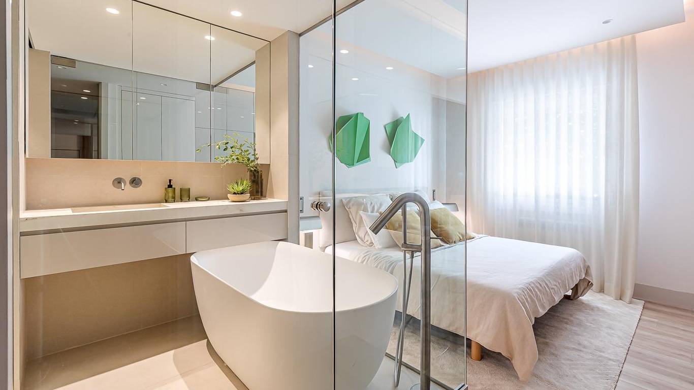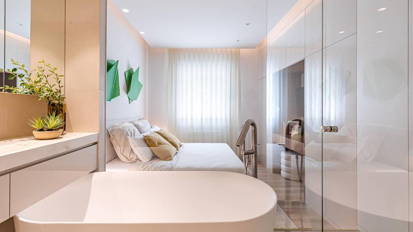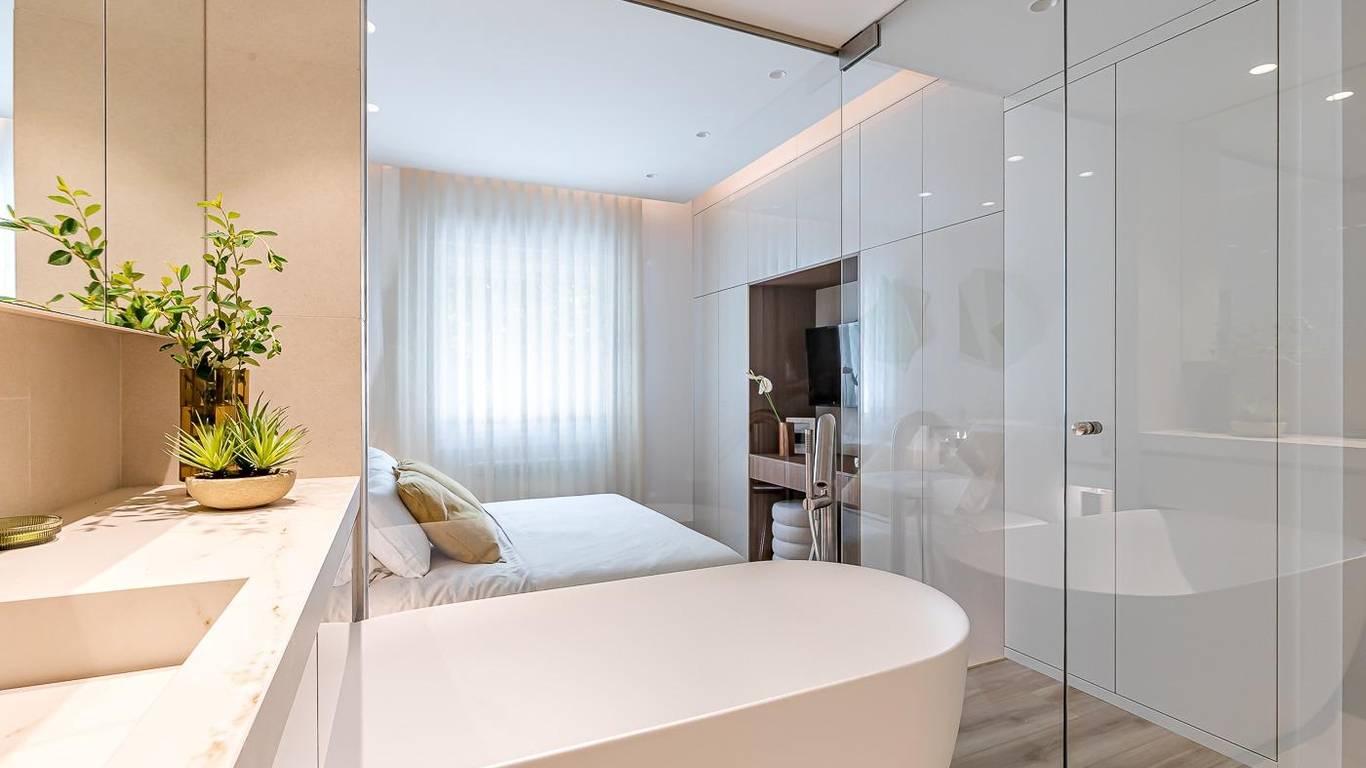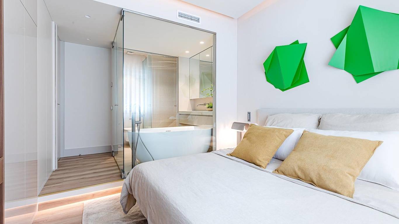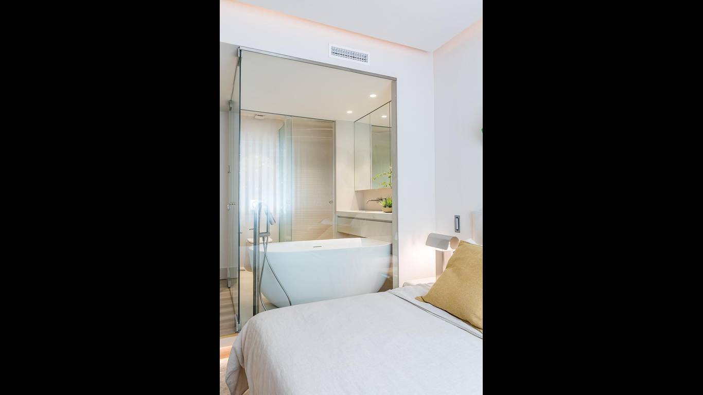 La vivienda, de 125 metros cuadrados, ha sido reformada con un diseño contemporáneo y materiales de altísima calidad. Sus tres elegantes habitaciones en suite, dos de ellas con su propio baño privado, ofrecen el máximo confort y privacidad. La distribución es inteligente y funcional, con espacios amplios, luminosos y perfectamente aprovechados. Al entrar tenemos un amplio salón comedor y una cocina totalmente equipada y separada con cristal. Por el lado izquierdo discurre un pasillo que distribuye primero un baño y la primera habitación, este baño hace también la función de aseo de cortesía al estar separado de la habitación. Siguiendo por el pasillo encontramos otra habitación con baño privado y la habitación principal al fondo también con baño en suite. Los acabados de lujo, los suelos de madera natural, la cocina de diseño y la cuidada iluminación hacen de esta propiedad un auténtico oasis urbano para quienes buscan estilo, calidad y bienestar.