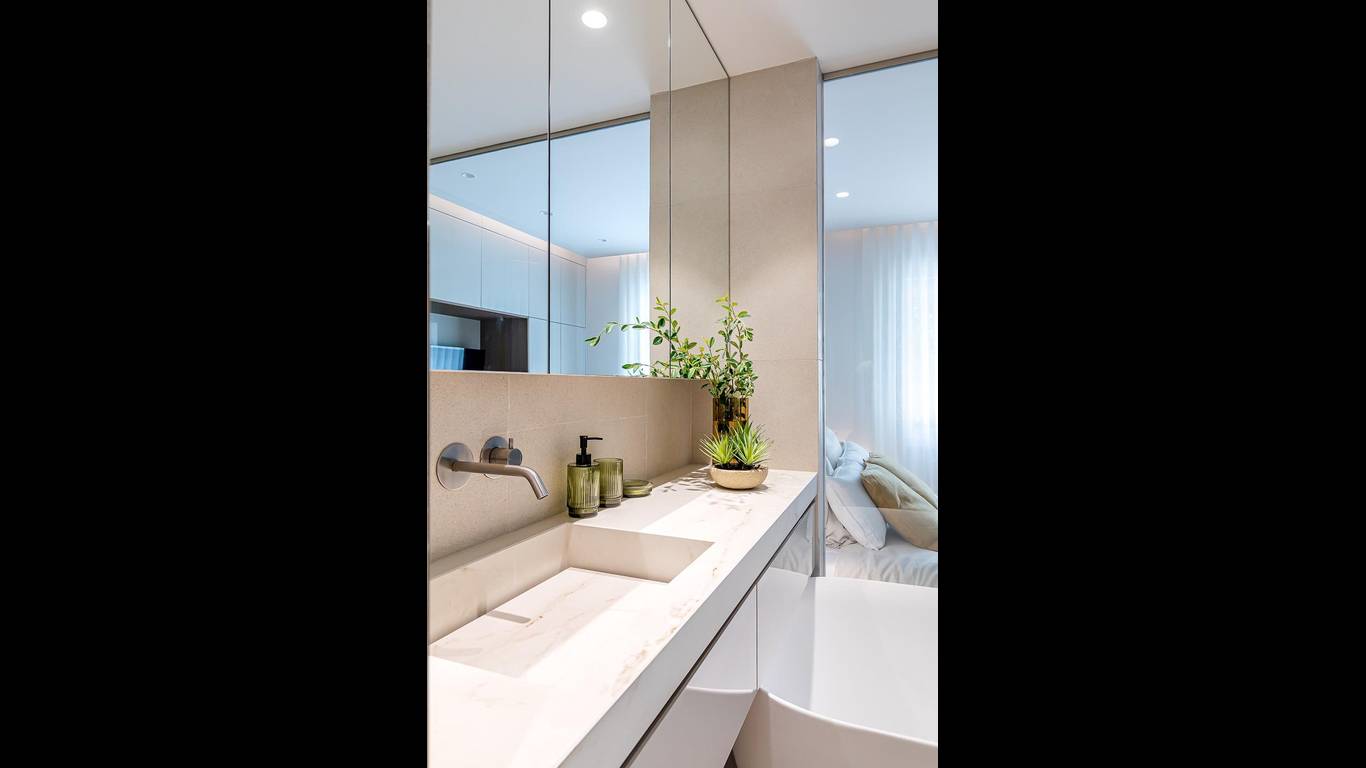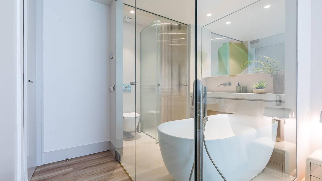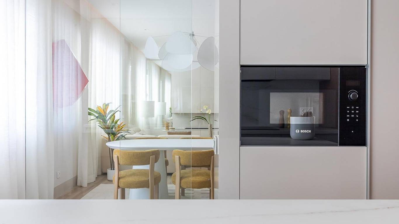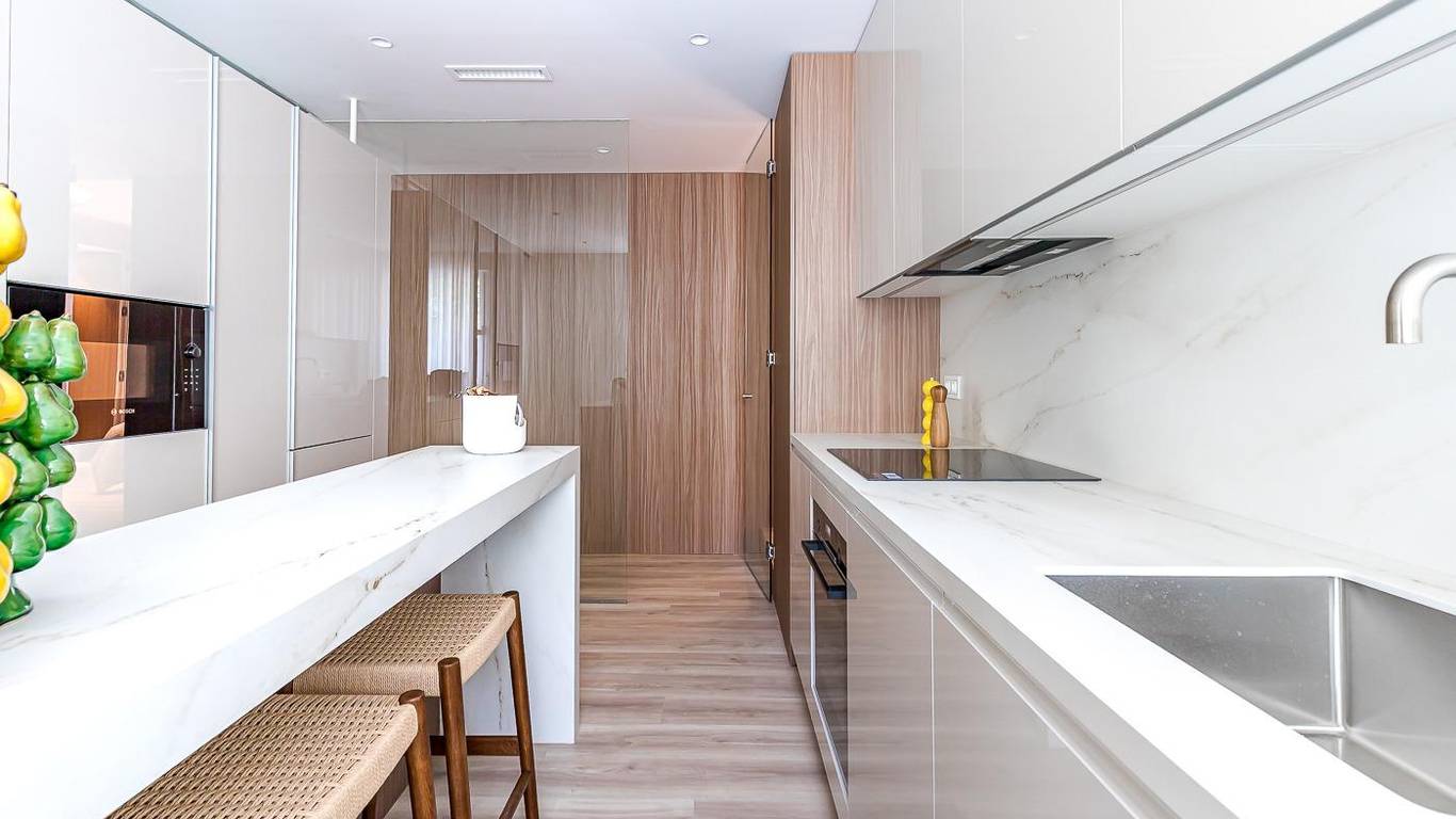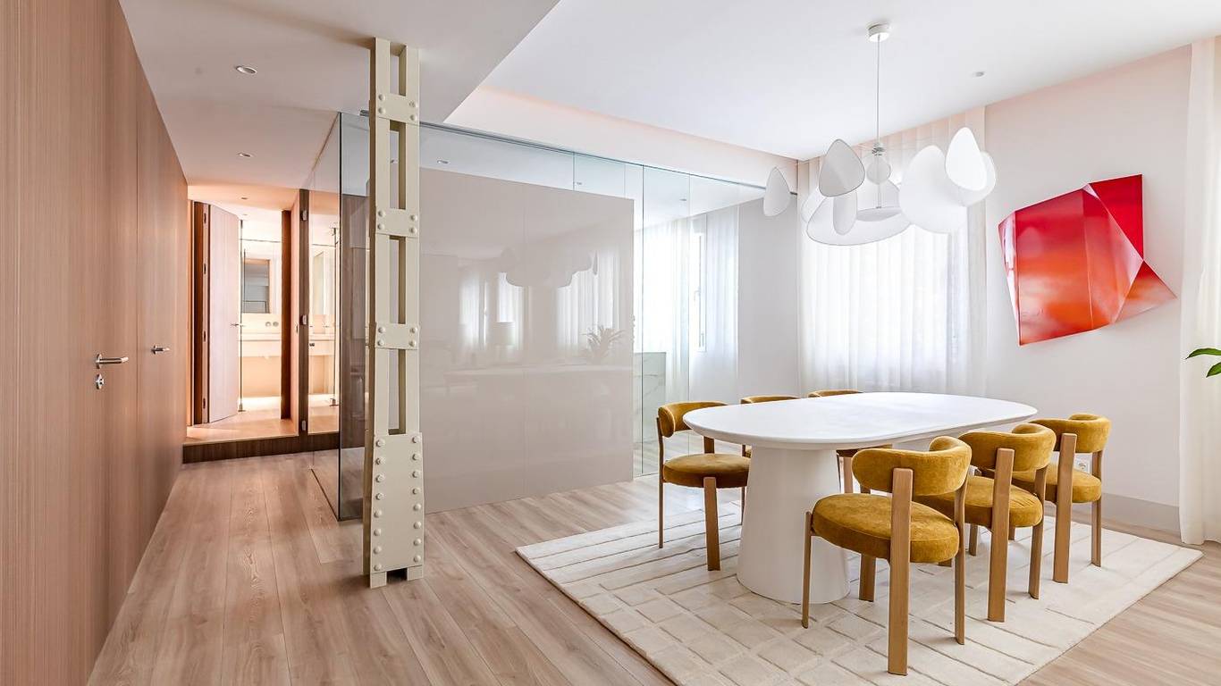 La vivienda, de 125 metros cuadrados, ha sido reformada con un diseño contemporáneo y materiales de altísima calidad. Sus tres elegantes habitaciones en suite, dos de ellas con su propio baño privado, ofrecen el máximo confort y privacidad. La distribución es inteligente y funcional, con espacios amplios, luminosos y perfectamente aprovechados. Al entrar tenemos un amplio salón comedor y una cocina totalmente equipada y separada con cristal. Por el lado izquierdo discurre un pasillo que distribuye primero un baño y la primera habitación, este baño hace también la función de aseo de cortesía al estar separado de la habitación. Siguiendo por el pasillo encontramos otra habitación con baño privado y la habitación principal al fondo también con baño en suite. Los acabados de lujo, los suelos de madera natural, la cocina de diseño y la cuidada iluminación hacen de esta propiedad un auténtico oasis urbano para quienes buscan estilo, calidad y bienestar.