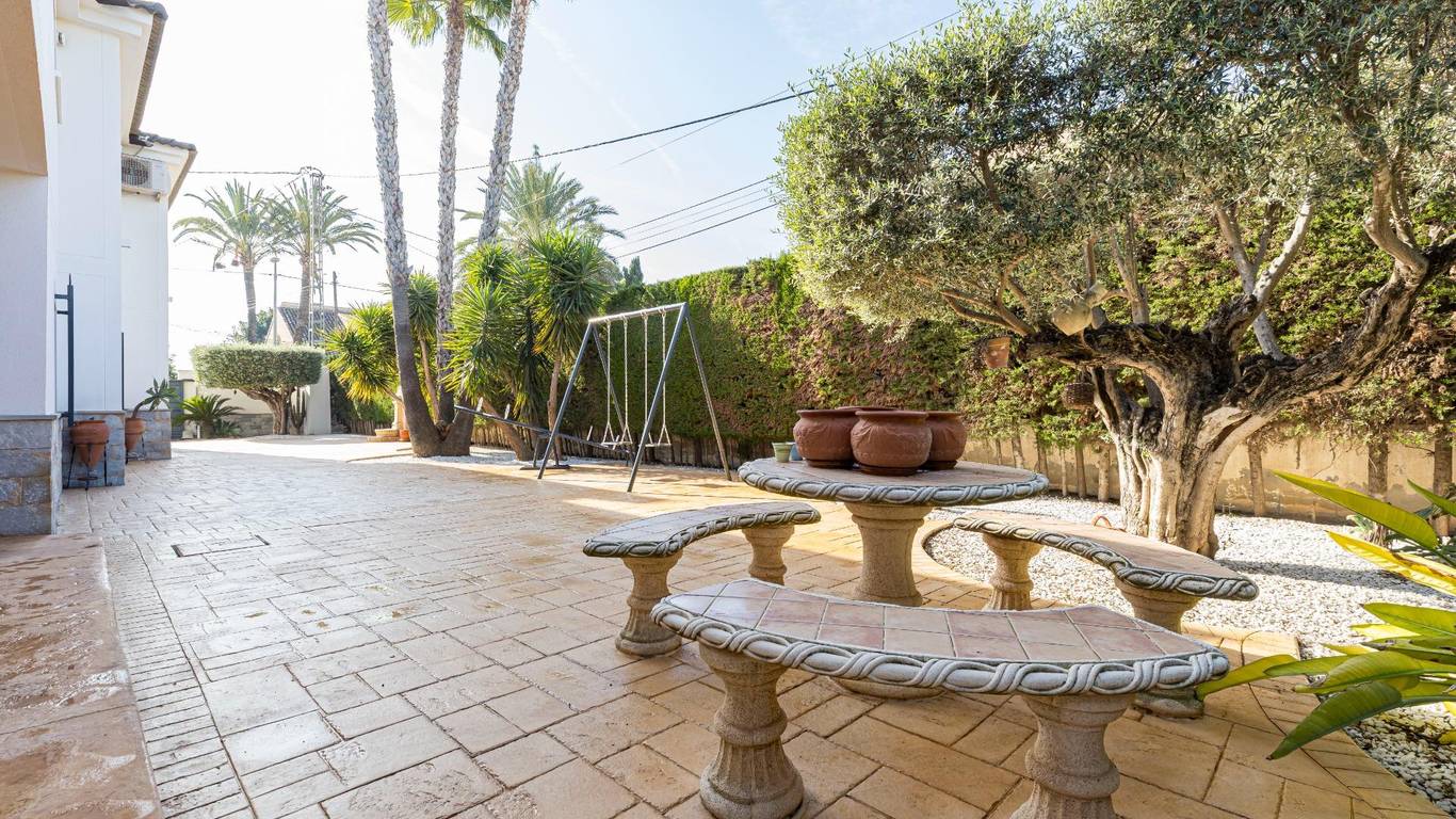 La propiedad se asienta sobre una parcela de 745 m, rodeada de zonas ajardinadas perfectamente cuidadas, con pérgola y zona de barbacoa, un espacio ideal para compartir momentos con familia y amigos durante todo el año.