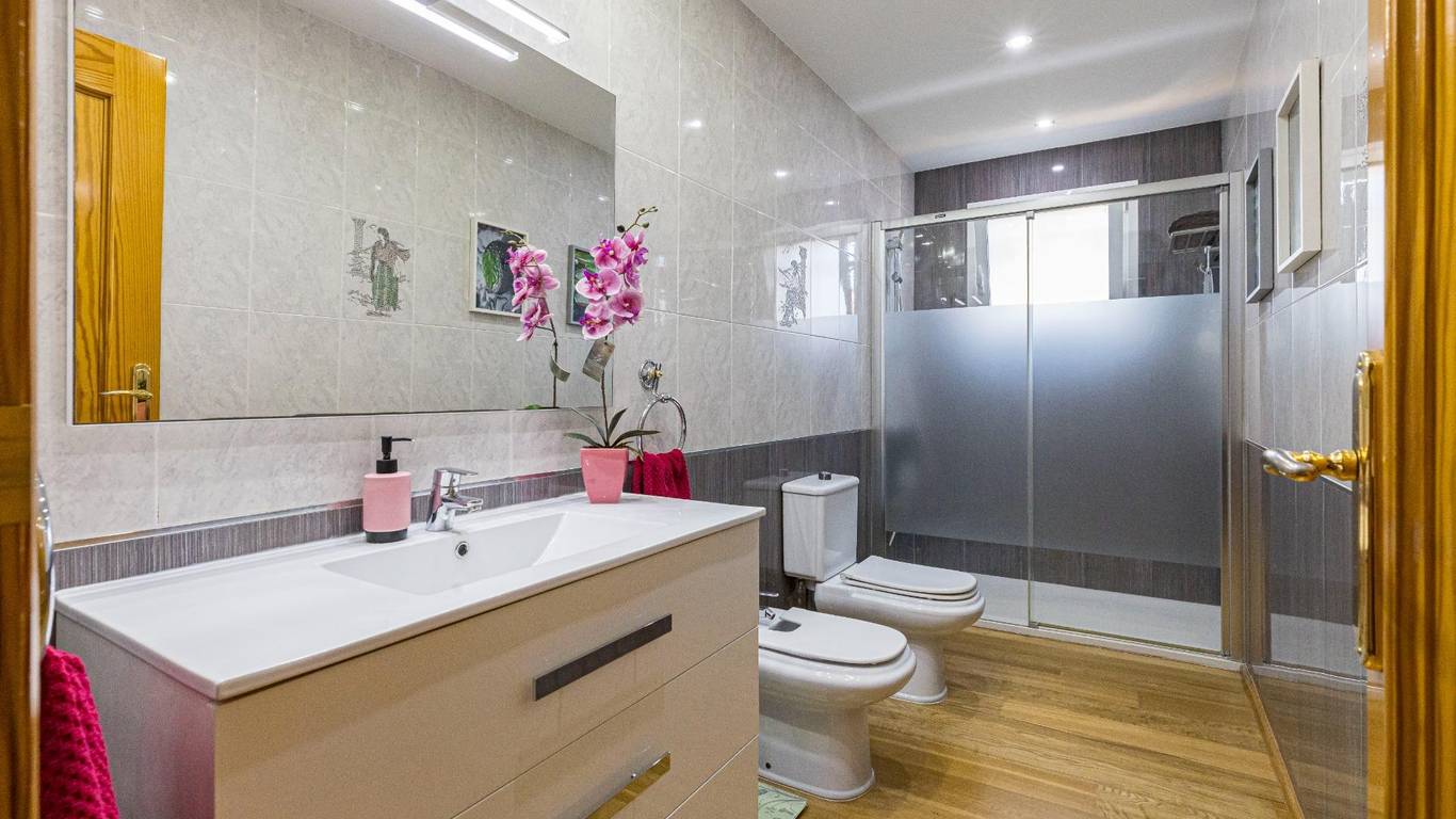 Baño independiente, ambos con plato de ducha y acabados modernos.