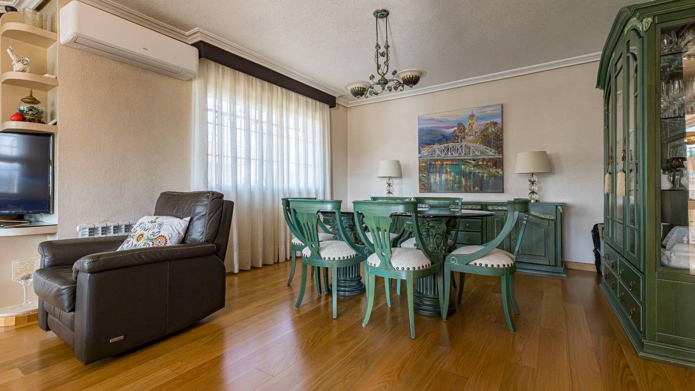 Amplio salón comedor muy luminoso, con grandes ventanales y acceso directo al exterior.