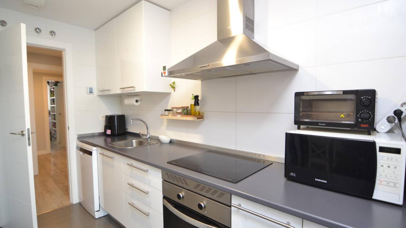 Cocina independiente, equipada y con gran capacidad de almacenaje.