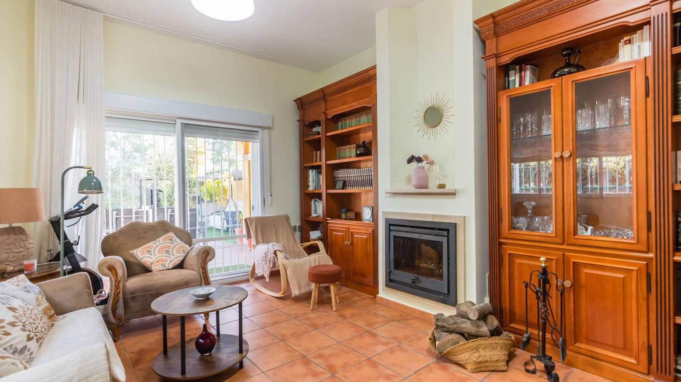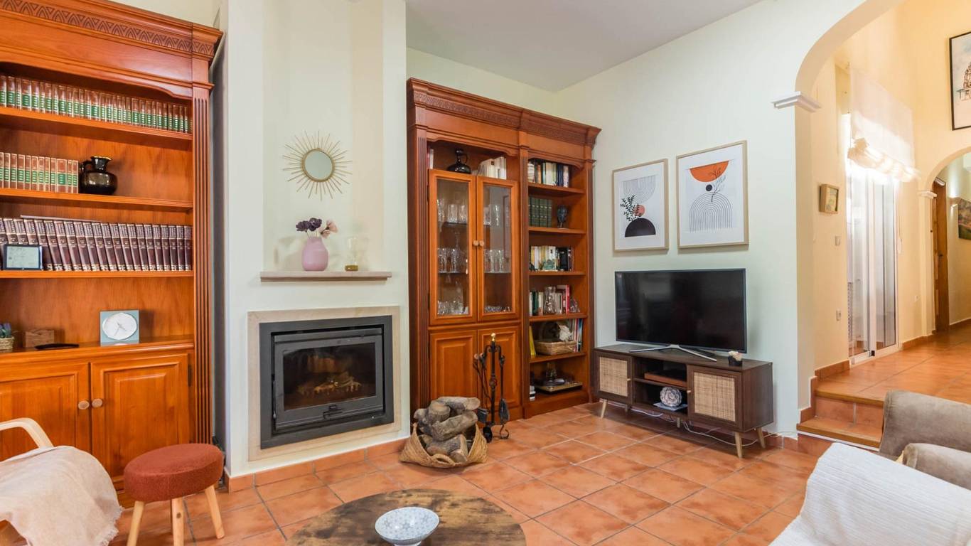 Un salón con chimenea, un lugar cálido y acogedor donde podrás disfrutar de momentos de relax en familia o con amigos. Desde el salón, tienes salida directa a las zonas comunes, donde se encuentran: