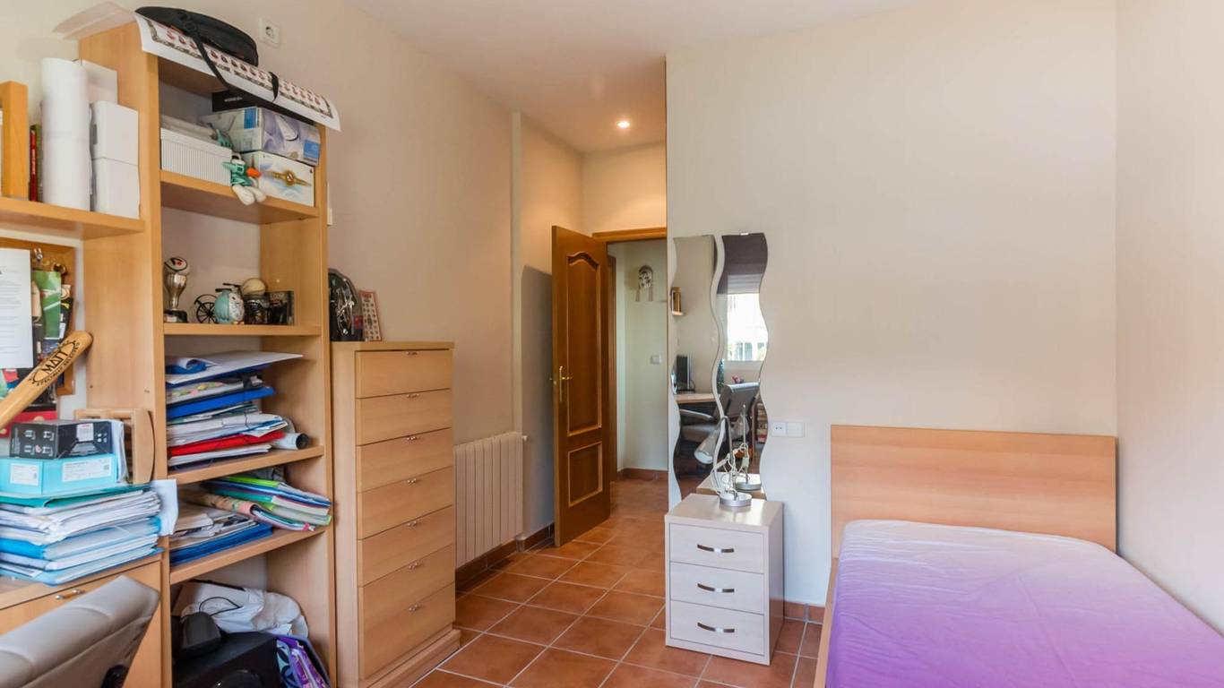 La planta primera alberga dos dormitorios adicionales, con amplias ventanas que permiten la entrada de luz natural, creando espacios luminosos y agradables. Además, esta planta cuenta con un baño completo que da servicio a estas estancias.