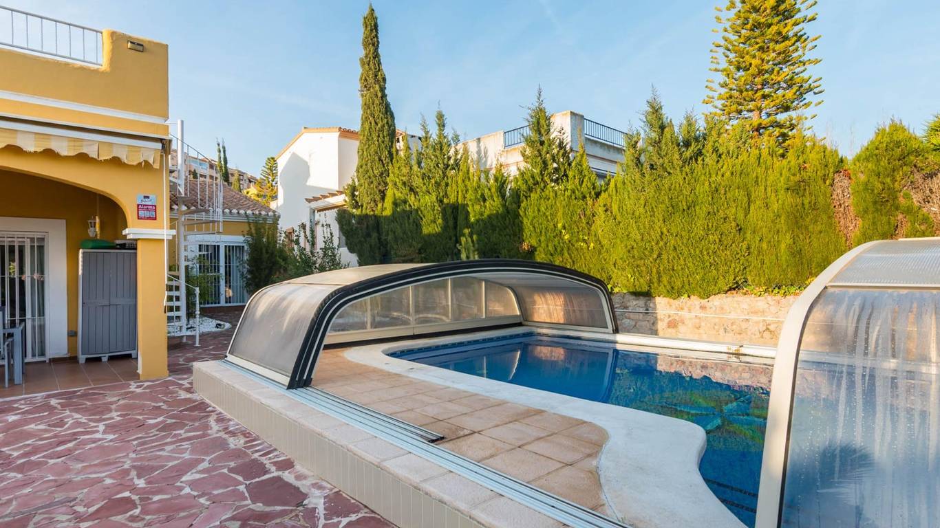 Piscina con cubierta retráctil, ideal para disfrutar de un baño en cualquier época del año.