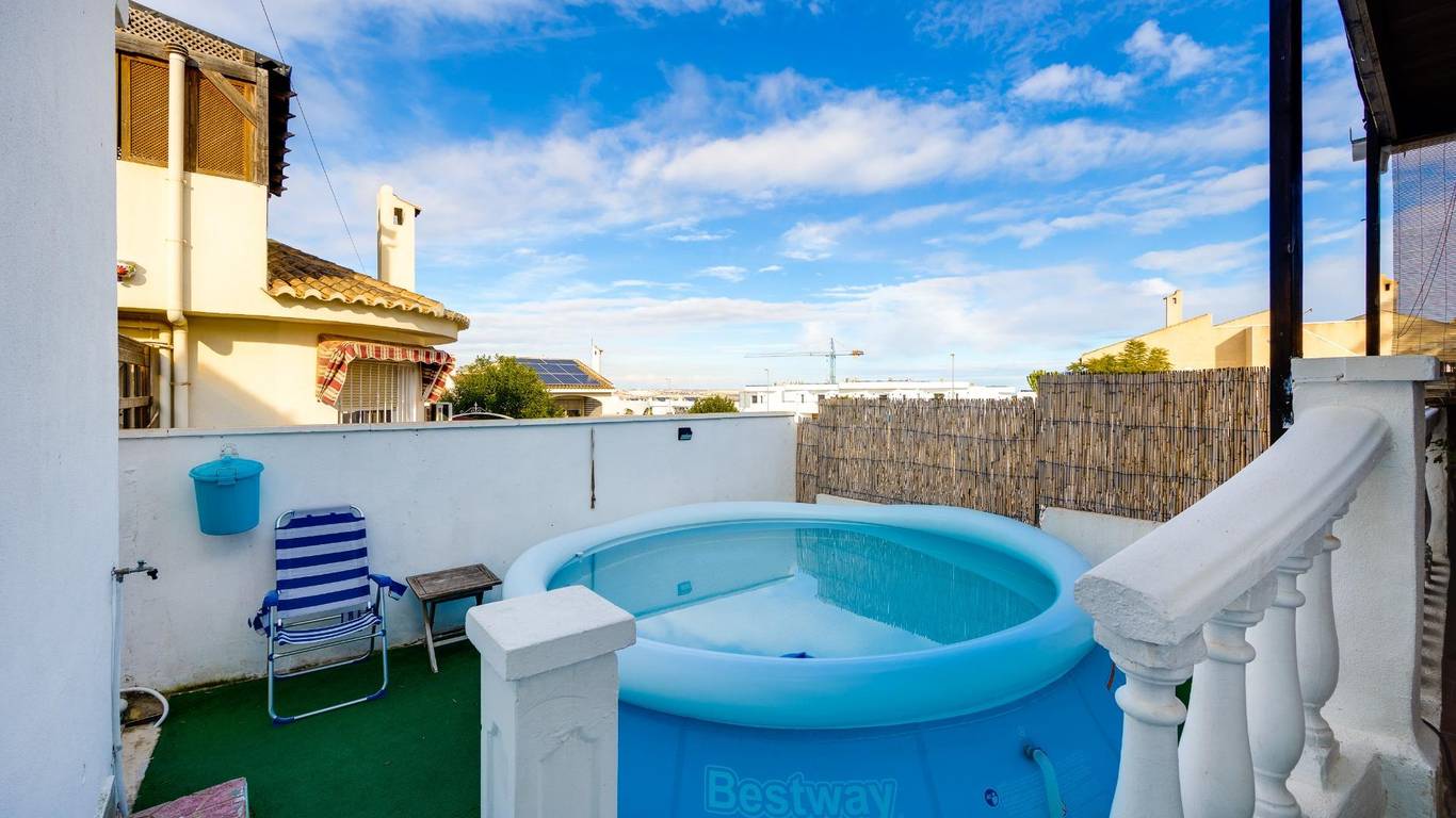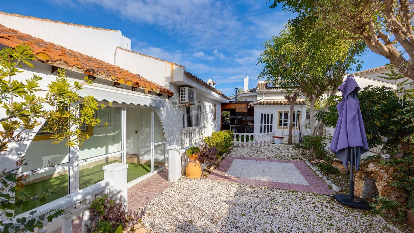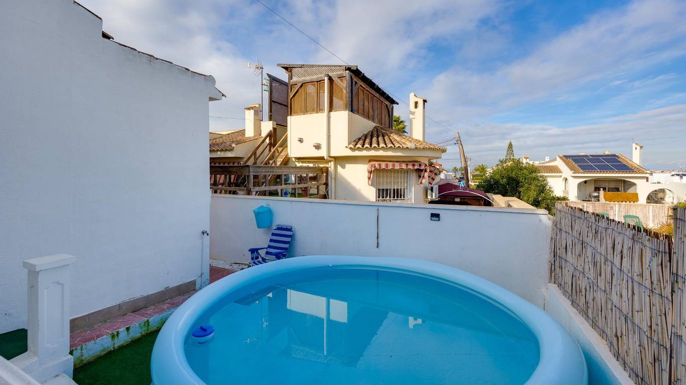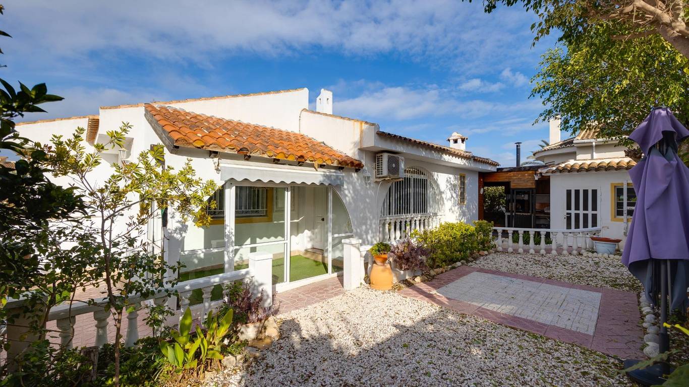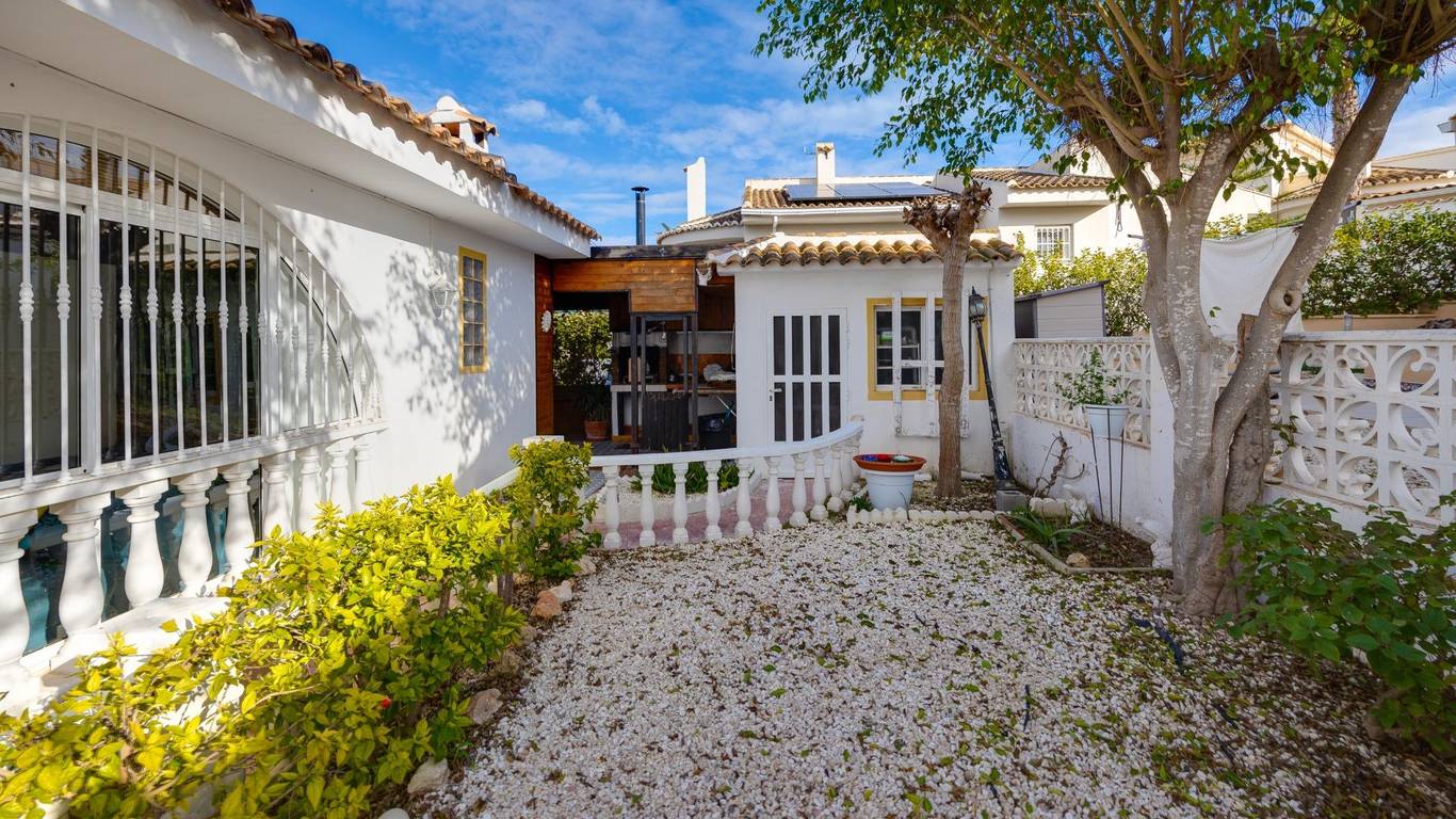 Casa con encanto y parcela privada en Pueblo Lucero RojalesSe vende por estilo de vida, no por metros.Descubra esta acogedora vivienda unifamiliar situada en la tranquila y demandada organización Pueblo Lucero, en Rojales, una zona residencial muy valorada por quienes buscan calma, privacidad y calidad de vida durante todo el año.Además, la ubicación es especialmente atractiva para los amantes del golf: a solo 5 minutos andando del Campo de Golf La Marquesa, un detalle muy importante para quienes disfrutan de este deporte y desean vivirlo en el día a día, sin necesidad de coche.La propiedad se asienta sobre una parcela de 200 m, cuidadosamente aprovechada, con jardín, zonas exteriores agradables y varios espacios pensados para disfrutar del clima mediterráneo: porche cubierto con vigas de madera, zona de barbacoa cerrada y terrazas ideales para reuniones, descanso o vida al aire libre.La vivienda, construida originalmente en 1996, ofrece una superficie construida aproximada de 90 m y una distribución cómoda:3 dormitorios1 baño completoSalón luminosoCocina reformada en 2025, moderna y funcionalEl baño ha sido parcialmente reformado en 2025, incorporando mobiliario actualizado. La casa se encuentra en buen estado general, lista para entrar a vivir, manteniendo un estilo cálido y con personalidad.En el exterior destaca una terraza superior actualmente equipada con piscina desmontable, que aporta un espacio extra de disfrute, así como una parcela privada que ofrece intimidad, algo cada vez más difícil de encontrar. Ubicación excelente:Zona tranquila, con fácil acceso a servicios, comercios y restaurantes, muy cerca de Ciudad Quesada y a corta distancia de las playas de Guardamar y La Mata. Una casa con alma, ideal como residencia habitual o segunda vivienda.No es una casa de lujo, pero sí una casa especial:se vende por estilo de vida, no por metros.