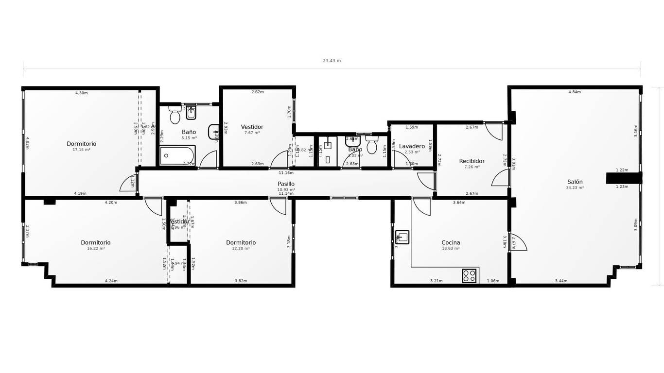 Superficie total: 163 m2