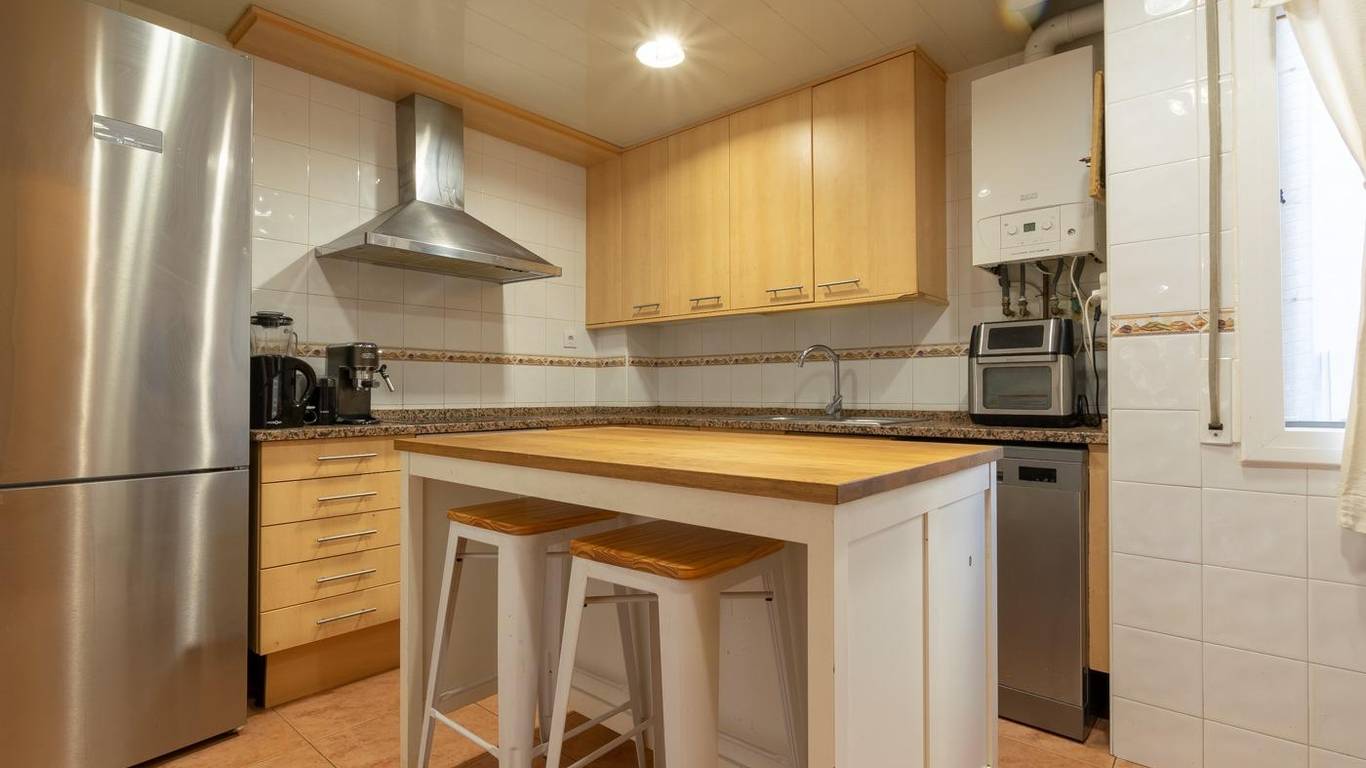 A la izquierda, la cocina independiente espacio ideal para cocinar y compartir sorprende con una práctica isla donde las comidas se vuelven más cercanas y naturales.