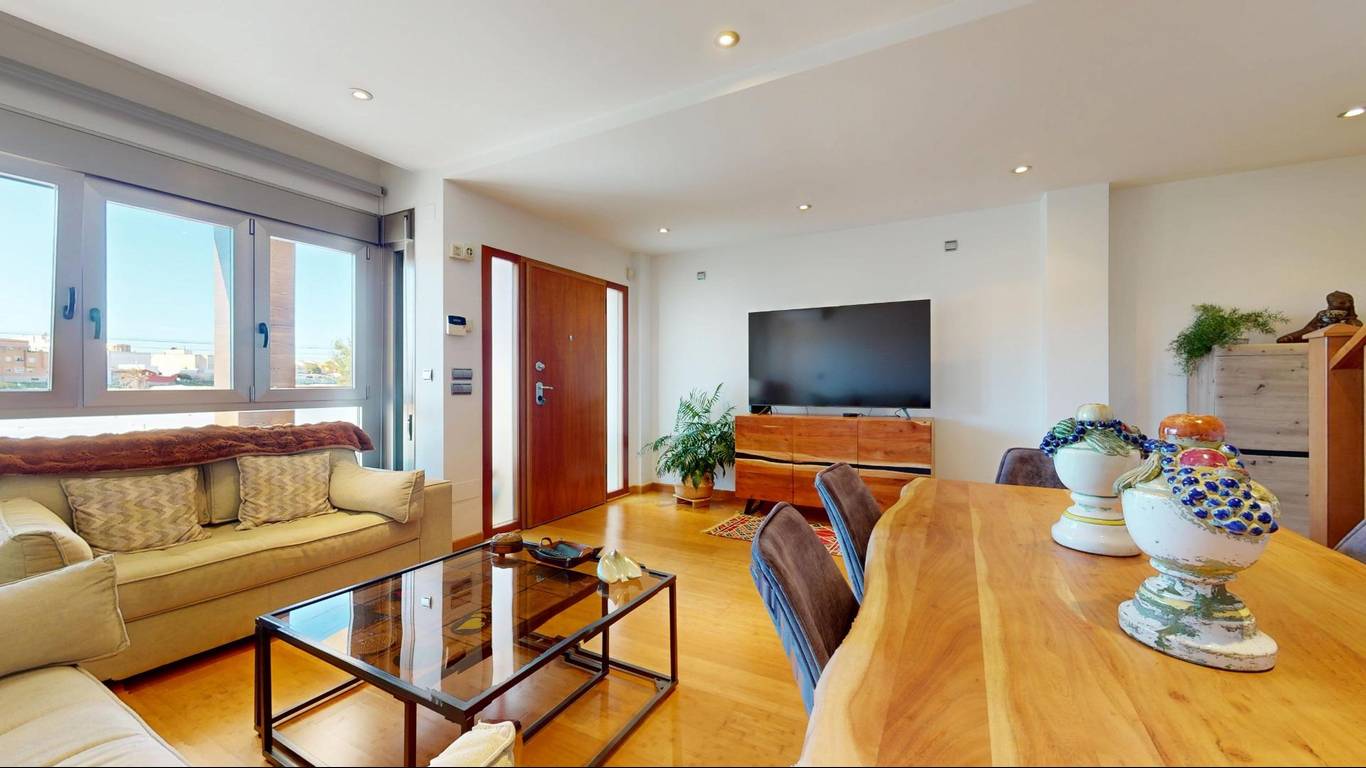 Si subes a la última planta, te encontrarás con una sala polivalente que puedes personalizar según tus necesidades y gustos. Además, esta habitación tiene acceso directo a un fabuloso solarium, donde podrás disfrutar de vistas panorámicas y momentos de paz y tranquilidad.