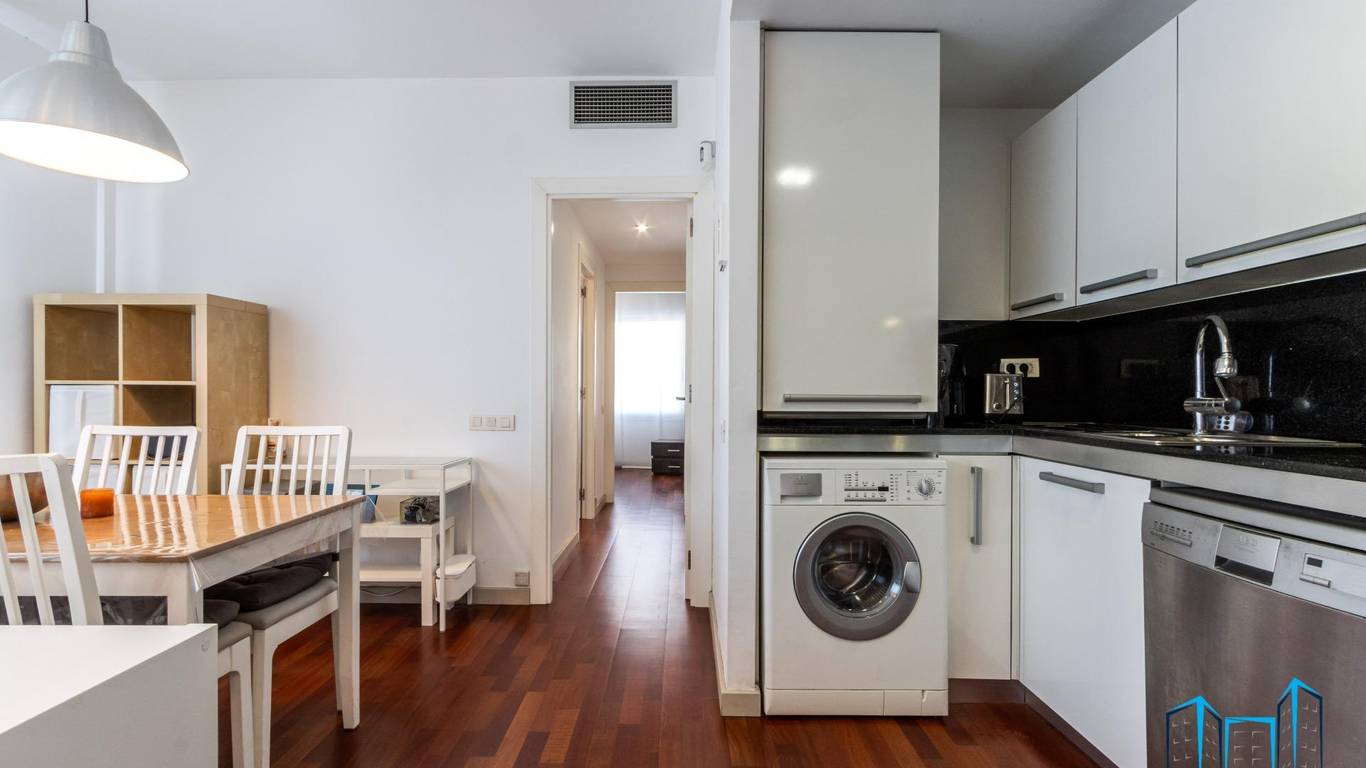 La vivienda, con 68 m construidos, destaca por su distribución funcional y su excelente entrada de luz natural gracias a su situación esquinera. Al entrar, nos recibe un salón comedor abierto a la cocina de 18 m, un espacio acogedor y moderno, pensado para compartir momentos, relajarse después del trabajo o disfrutar de cenas tranquilas en casa.