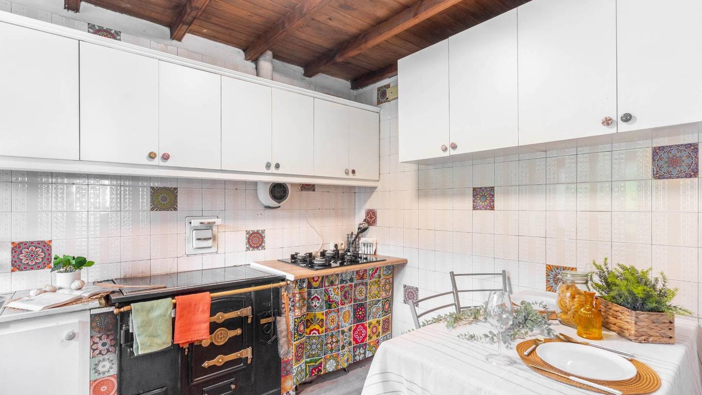En la PLANTA SUPERIOR encontramos: Dos habitaciones dobles, un baño completo, cocina equipada con su tradicional cocina de carbón y un acogedor y luminoso salón.