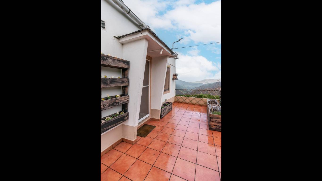 Desde el salón se accede a su preciosa terraza, toda la zona exterior de aproximadamente 39 m, perfecto para un pequeño huerto de autoconsumo,ideal para comidas al aire libre y disfrutar de las vistas. Bajo la terraza hay un leñero o trastero.
