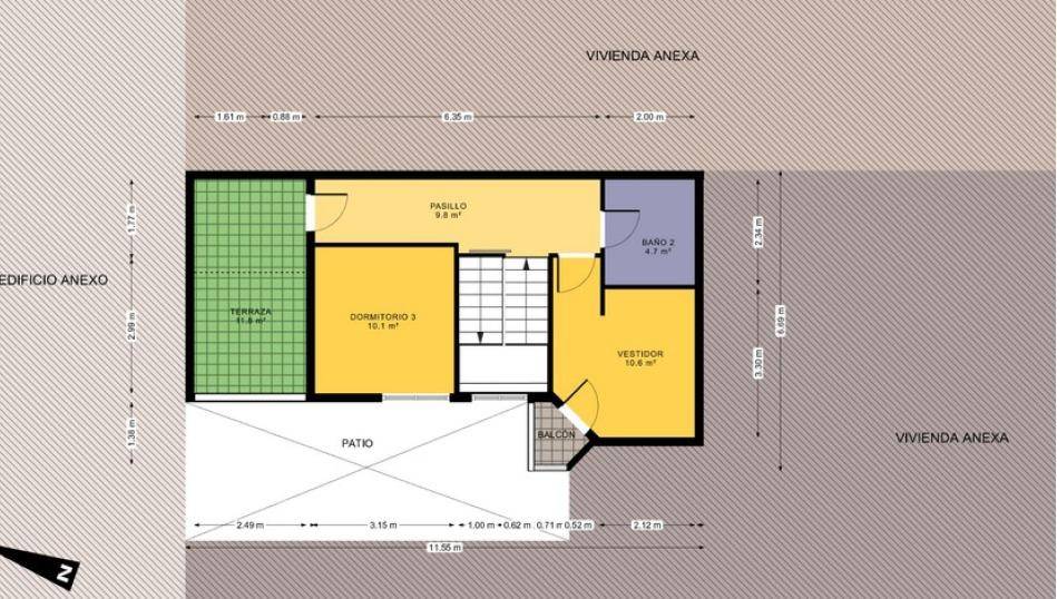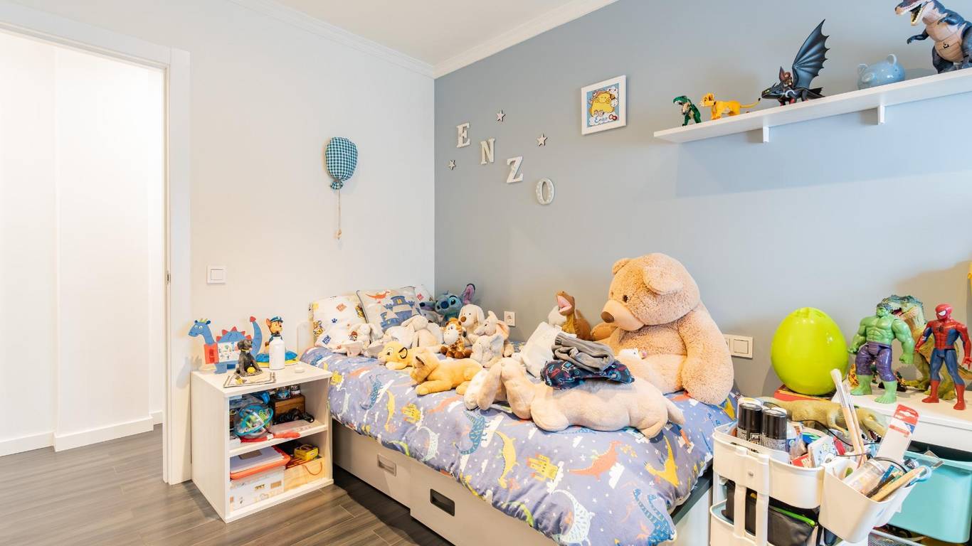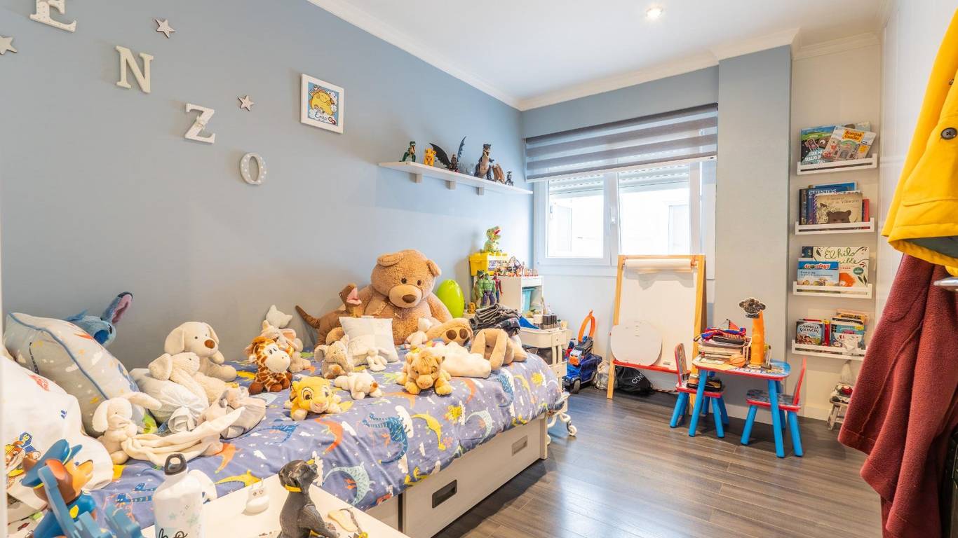 La planta superior alberga una magnífica suite privada, concebida como un espacio de descanso exclusivo. Dispone de dormitorio principal, vestidor (anteriormente el cuarto dormitorio), baño en suite y una agradable terraza privada que permite disfrutar del exterior con total intimidad.