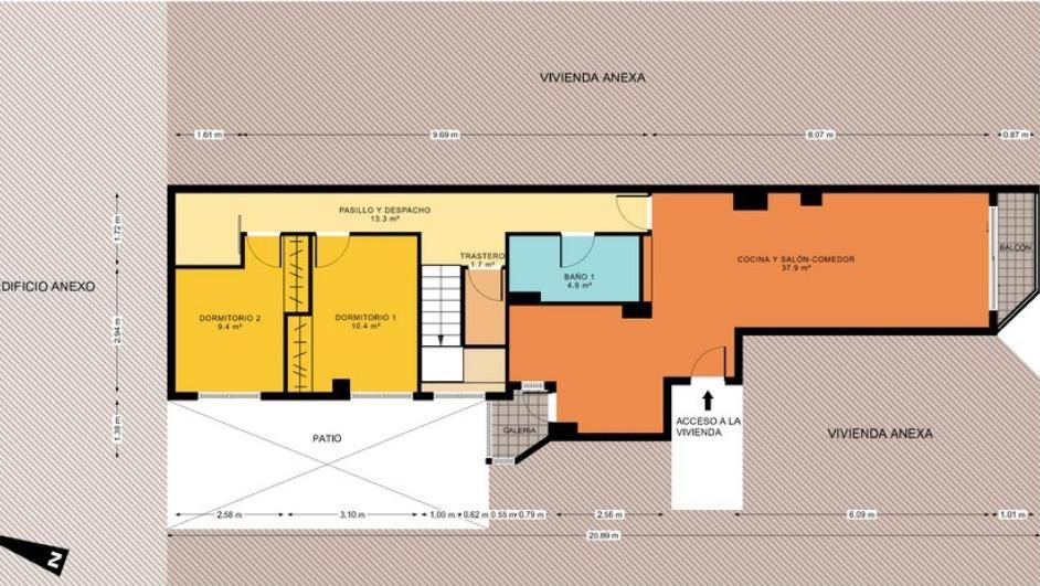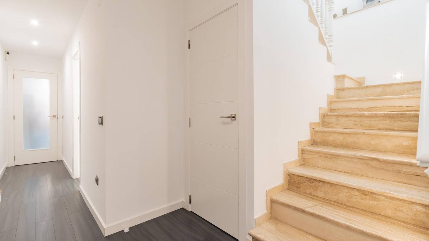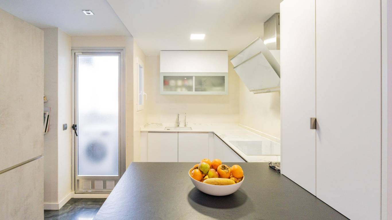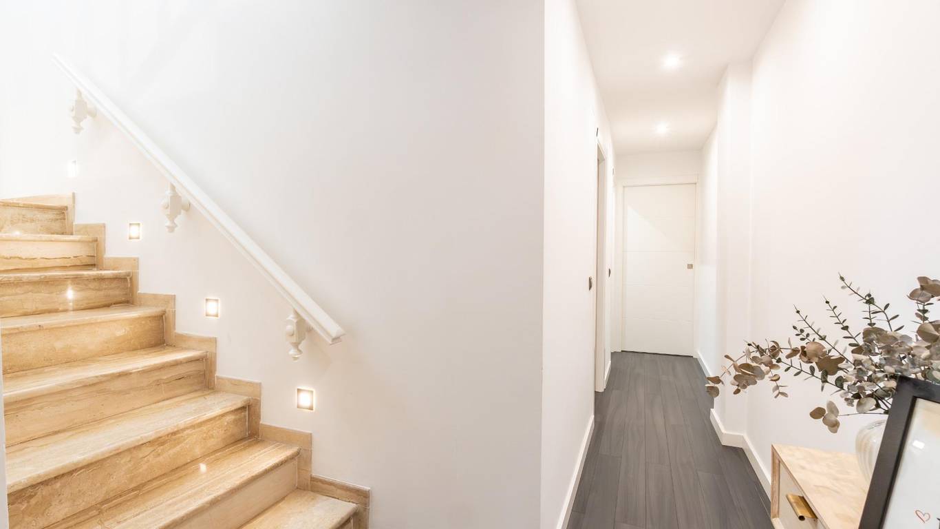 En la planta baja encontramos un amplio y luminoso salón comedor, un espacio acogedor y muy bien aprovechado, que se integra con una cocina abierta al salón mediante una práctica y elegante península, ideal tanto para el día a día como para reuniones sociales. Desde esta zona se accede a un pequeño balcón que aporta luz natural y ventilación. En esta misma planta se sitúan dos dormitorios, un pequeño despacho o trastero perfecto como zona de teletrabajo o almacenaje, una galería independiente y un baño completo recientemente reformado con acabados modernos.