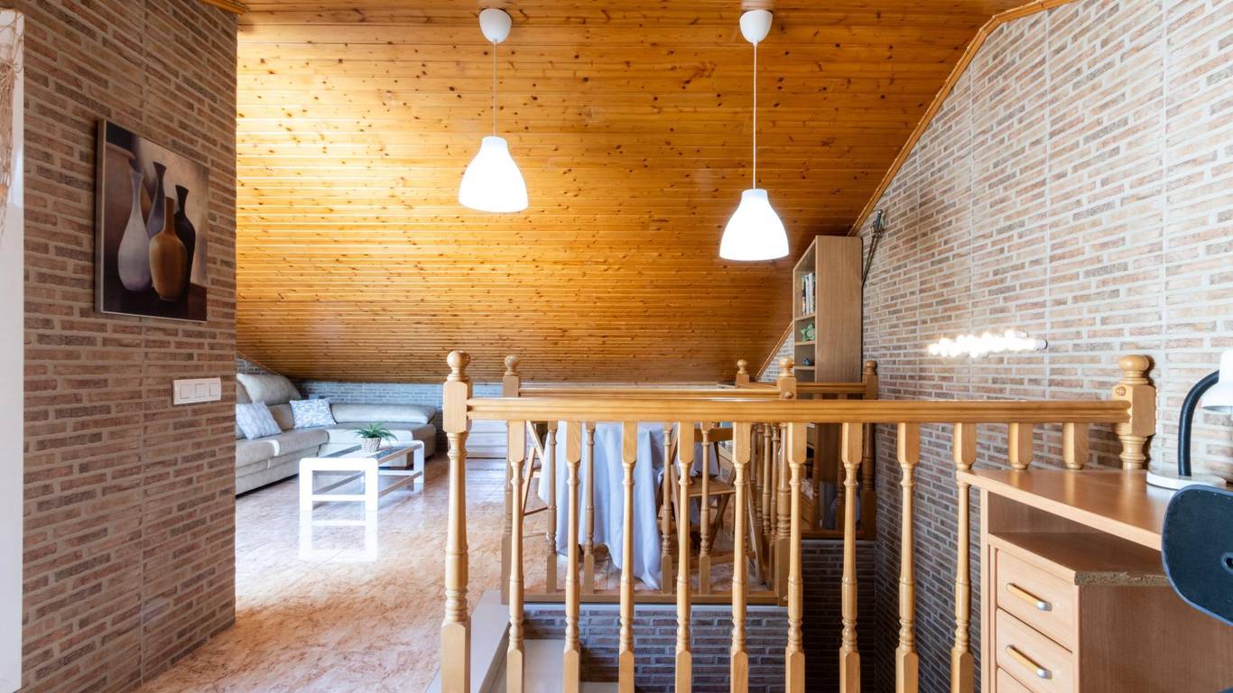 En cuanto a calidades, la vivienda destaca por su construcción en obra vista, garantía de durabilidad y estética atemporal. Dispone de suelos de gres, carpintería interior de roble, carpintería exterior de aluminio con doble acristalamiento, calefacción de gas natural y aire acondicionado por splits (no recuerdo si tiene splits).