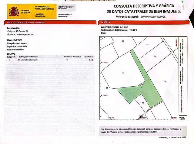 Comprar · Terrenos · Oportunidad de Inversión en Terreno Rural en La Ñorica, Totana