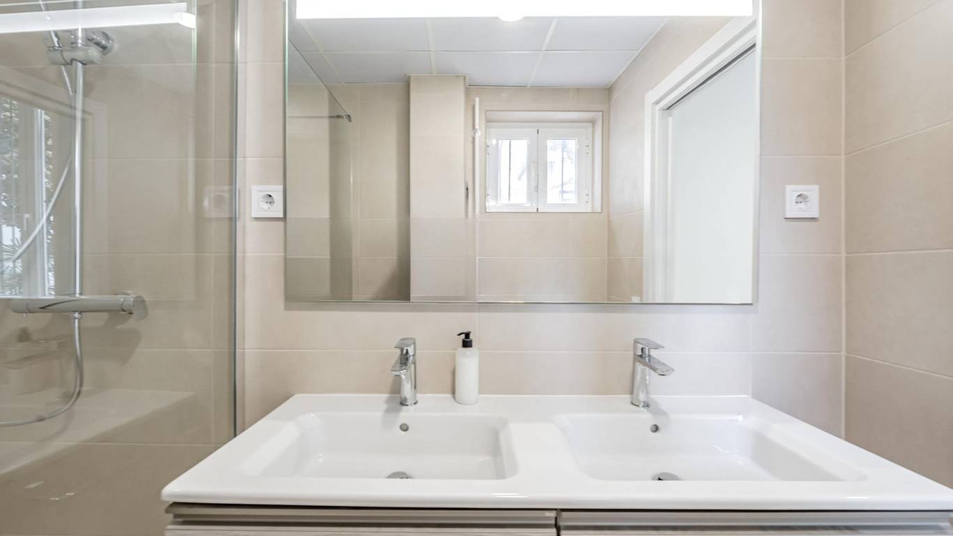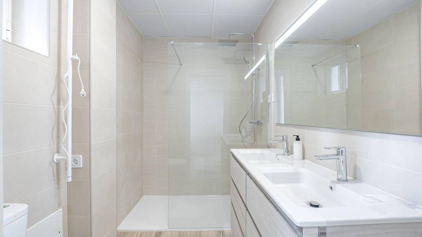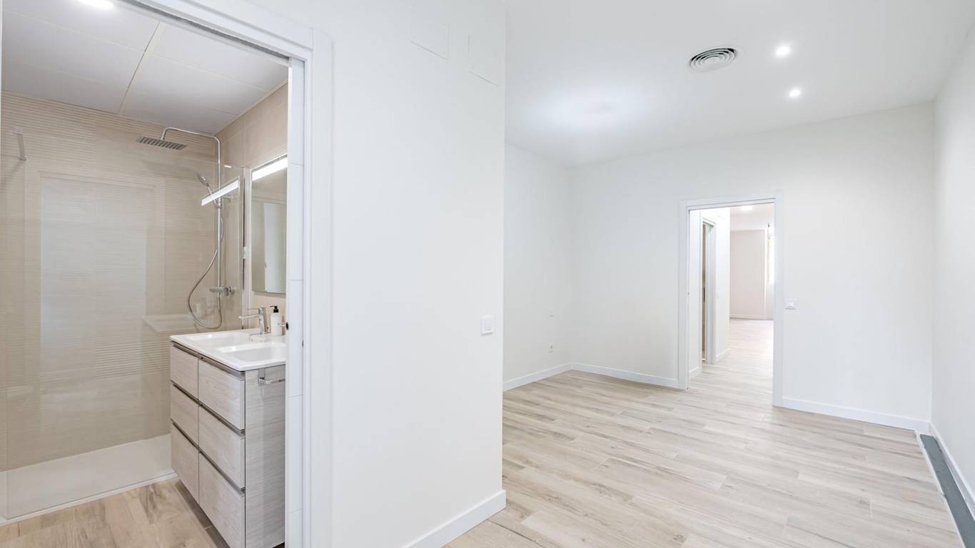 Distribución: 2 habitaciones, salón,cocina, amplio hall, 2 cuartos de baño completos. Portería. Excelente comunidad de vecinos/as. Aislamiento térmico y acústico en toda la vivienda. Sistema de AIRE ACONDICIONADO y CALEFACCIÓN por bomba de calor con instalación por conductos FUJITSU.