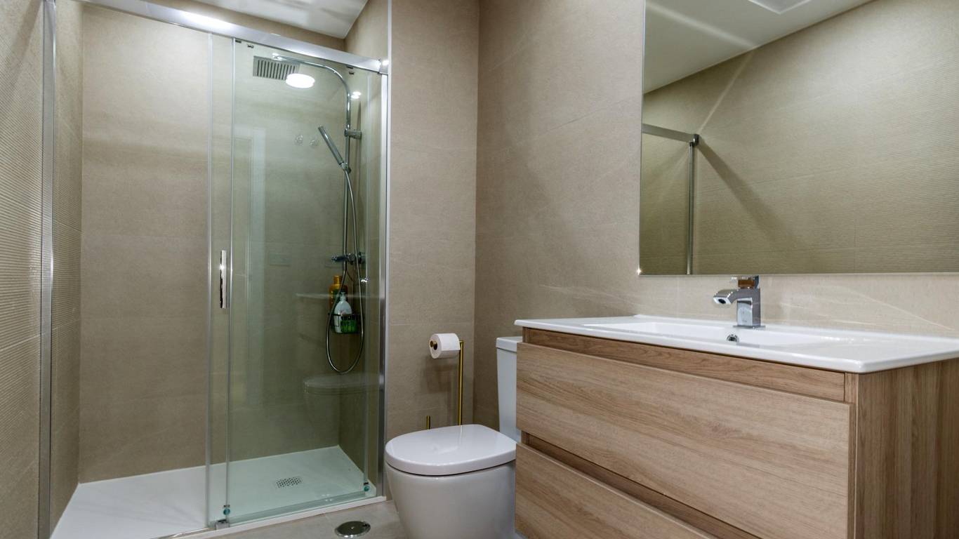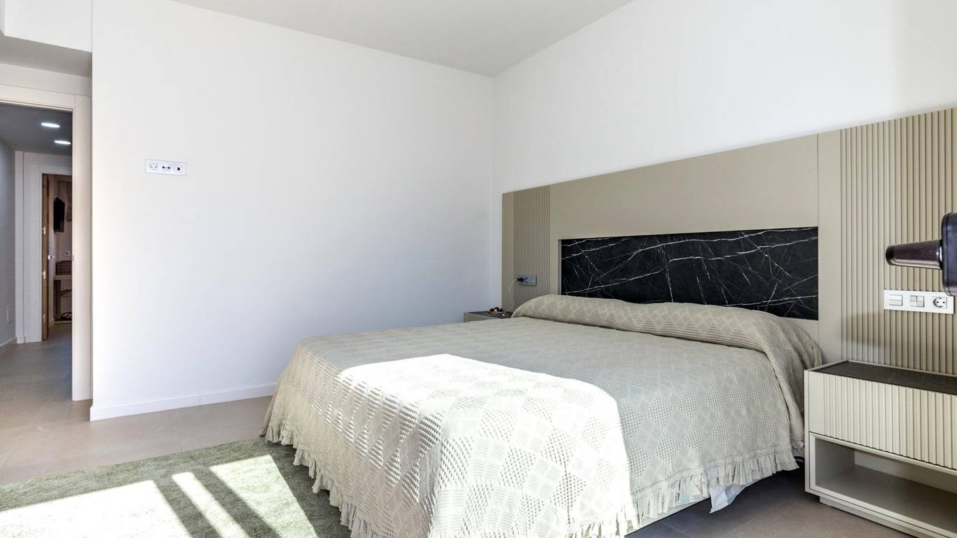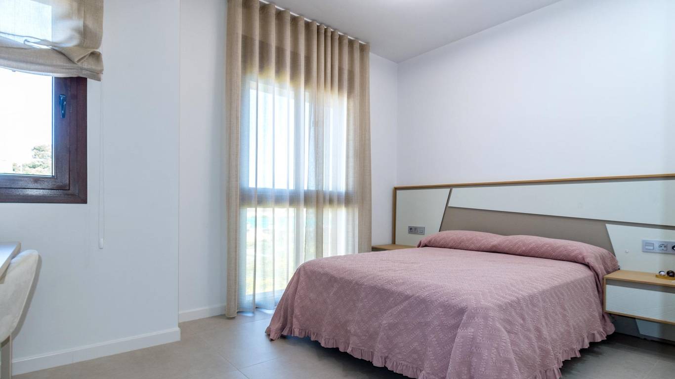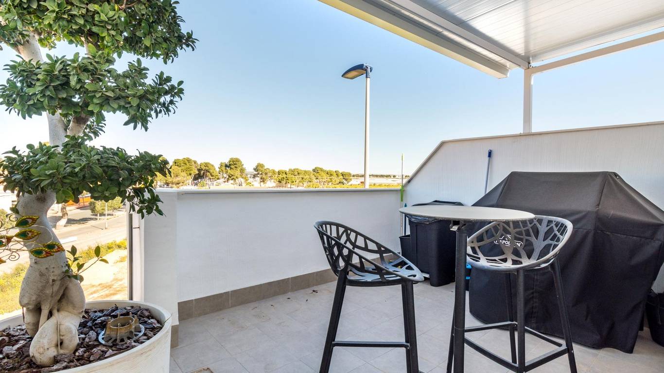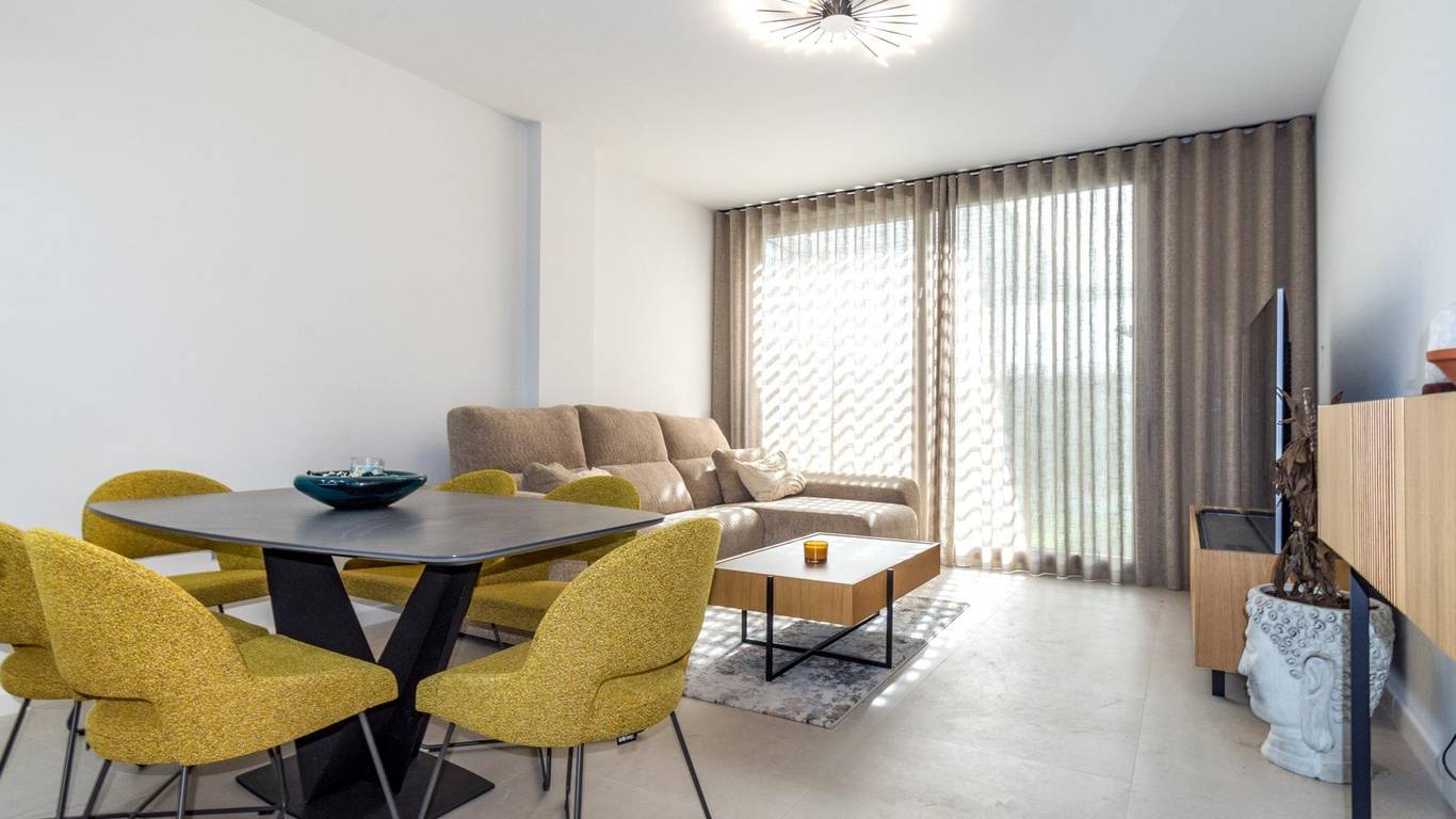 Salón amplio con cocina integrada, tres dormitorios dobles (uno con terraza propia) y dos baños completos. Todo bastante equilibrado, sin espacios desaprovechados. La parte exterior es lo que marca la diferencia.