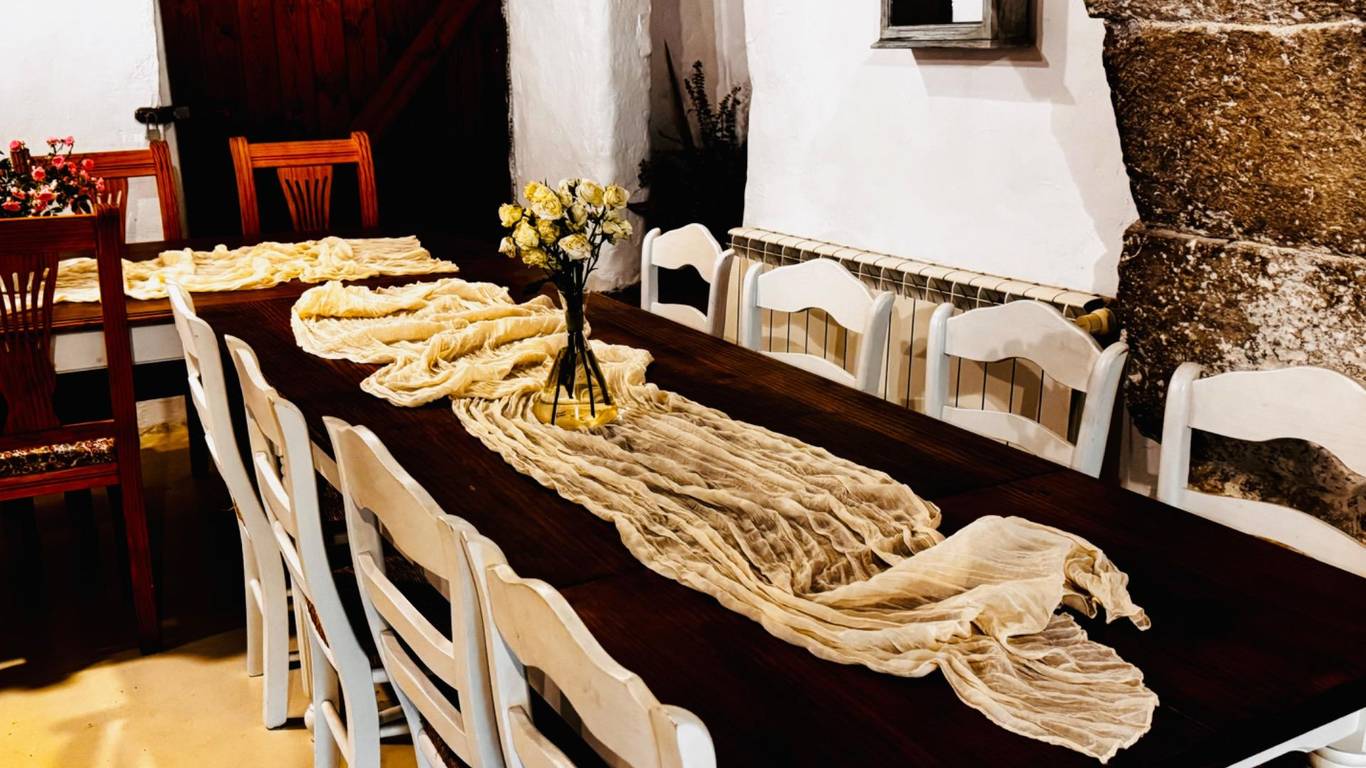 La Finca construida en el Siglo XII, consta de 8 dormitorios, con una construcción principal 687 m2, 6 baños, 2 salas de estar, zona de barbacoa, piscina, vistas panorámicas, una sala para eventos de aproximadamente 120 m2, capacidad máxima de 24 personas.