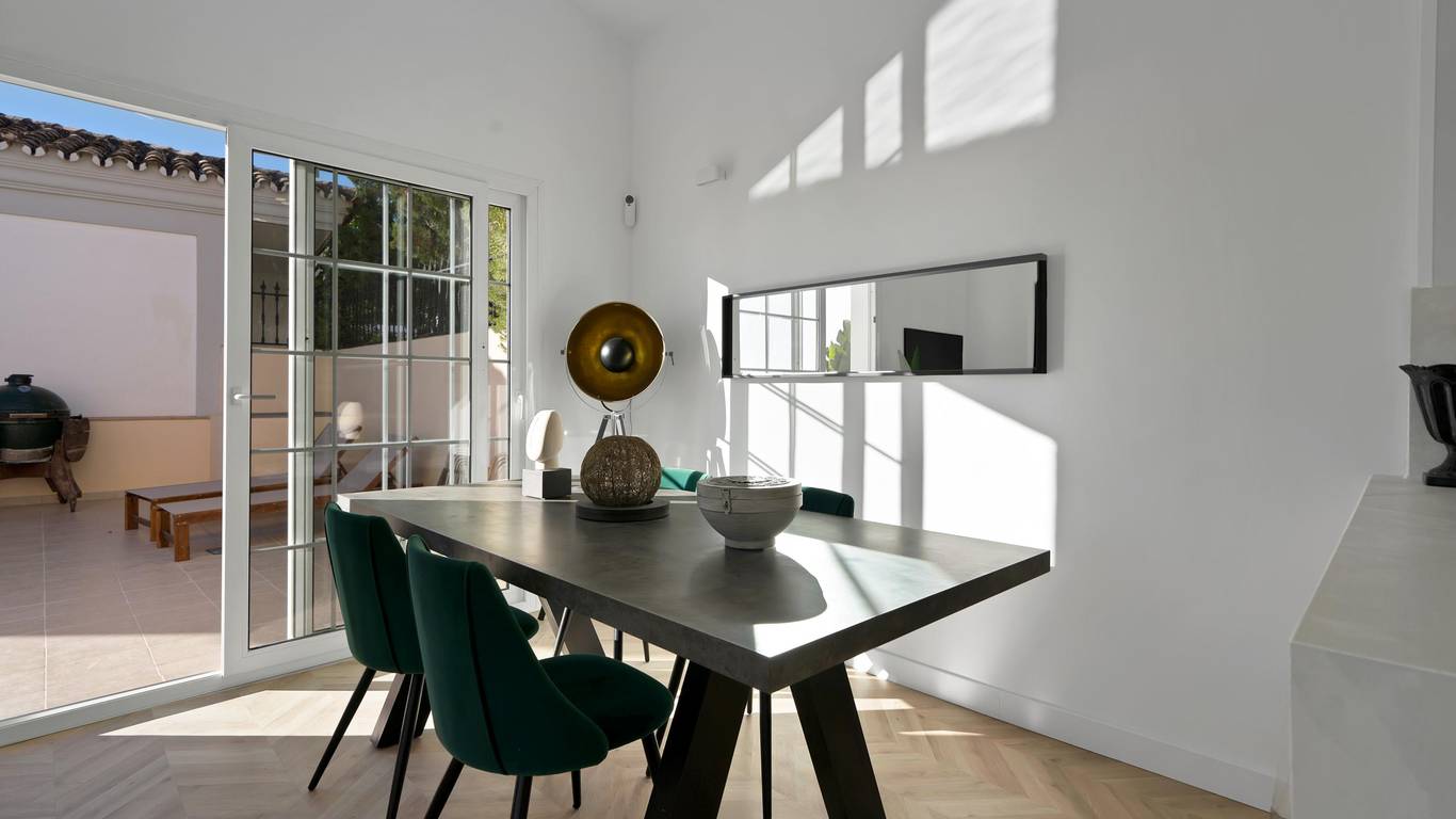 Изысканно отремонтированный таунхаус с залитой солнцем террасой и небольшим бассейном в Альдеа Дорада. Этот прекрасно отремонтированный таунхаус расположен в эксклюзивном закрытом жилом комплексе Альдеа Дорада, в востребованном районе Ла Серкилья, Нуэва Андалусия.