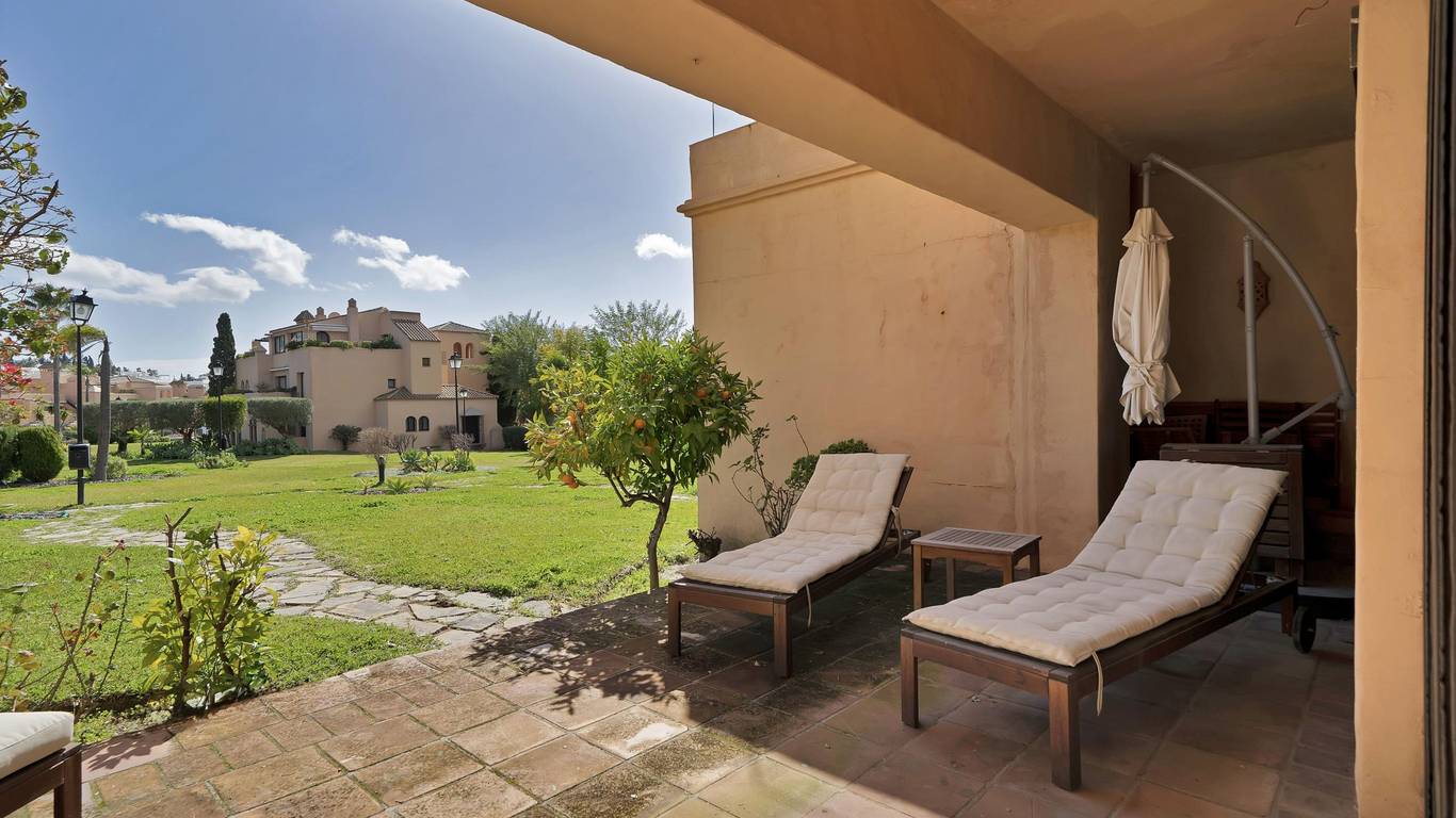 Просторная квартира с террасой и большим потенциалом в Картуха-дель-Гольф, Эстепона. Квартира на первом этаже, расположенная в эксклюзивном жилом комплексе Картуха-дель-Гольф в Эстепоне.