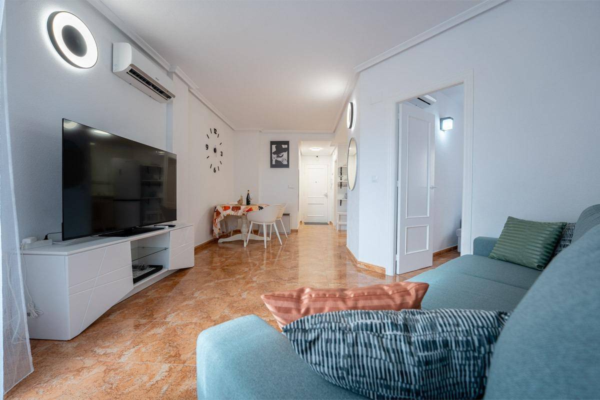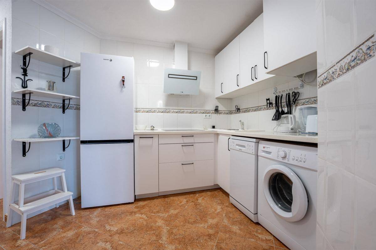 Расположен в благоустроенном жилом районе, в шаговой доступности от всех удобств: супермаркеты, такие как Consum и Aldi, мебельные магазины, аптеки и автобусная остановка прямо рядом с домом. До центра города всего 10 минут ходьбы, а до пляжа — около 30 минут.