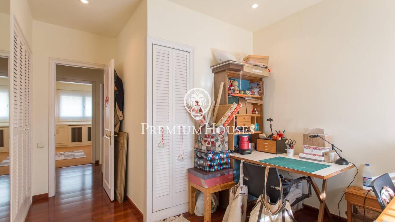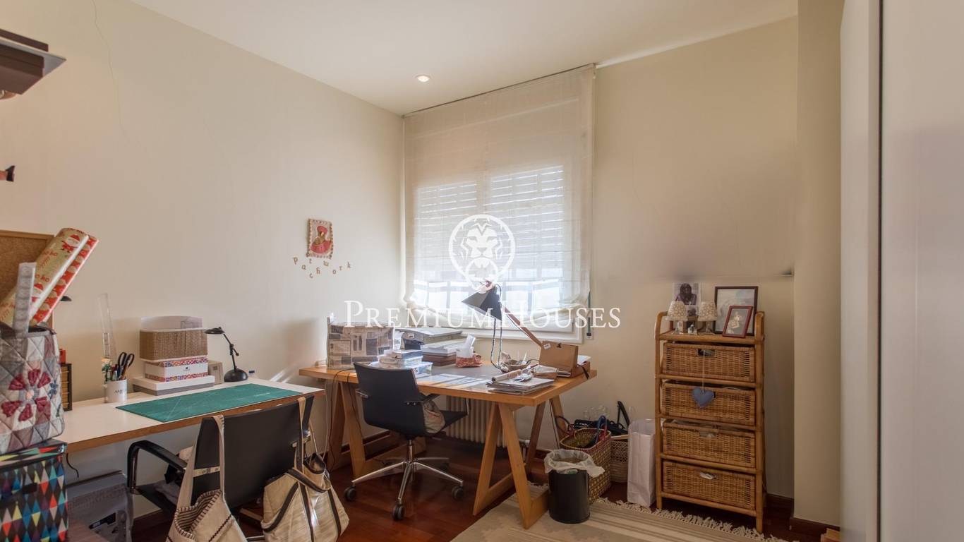 Из гостиной также есть выход в большую комнату, которая в настоящее время используется в качестве офиса. На этом же этаже находится гостевой туалет. Из приемной мы поднимаемся по величественной лестнице в спальную зону, которая состоит из 3 больших спален с ванными комнатами и спальни с двуспальной кроватью.