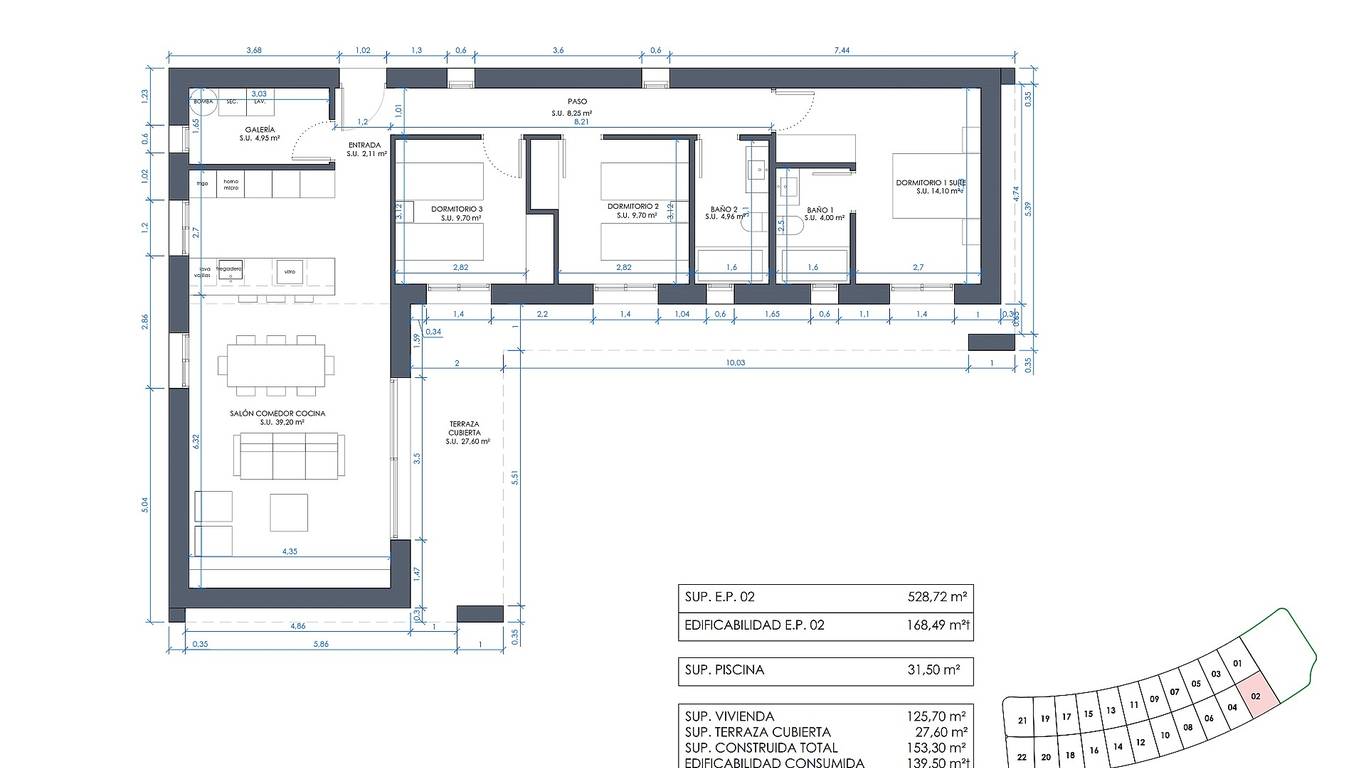 We are delighted to present you this off-plan villa, the house is divided into lounge / diner, kitchen, utility room with electric water heater but which in turn is supplied with hot water by solar panel, three bedrooms, two with built-in wardrobe, two bathrooms with shower, one en-suite and a covered terrace. Of course, an 8x4 swimming pool should not be missed!