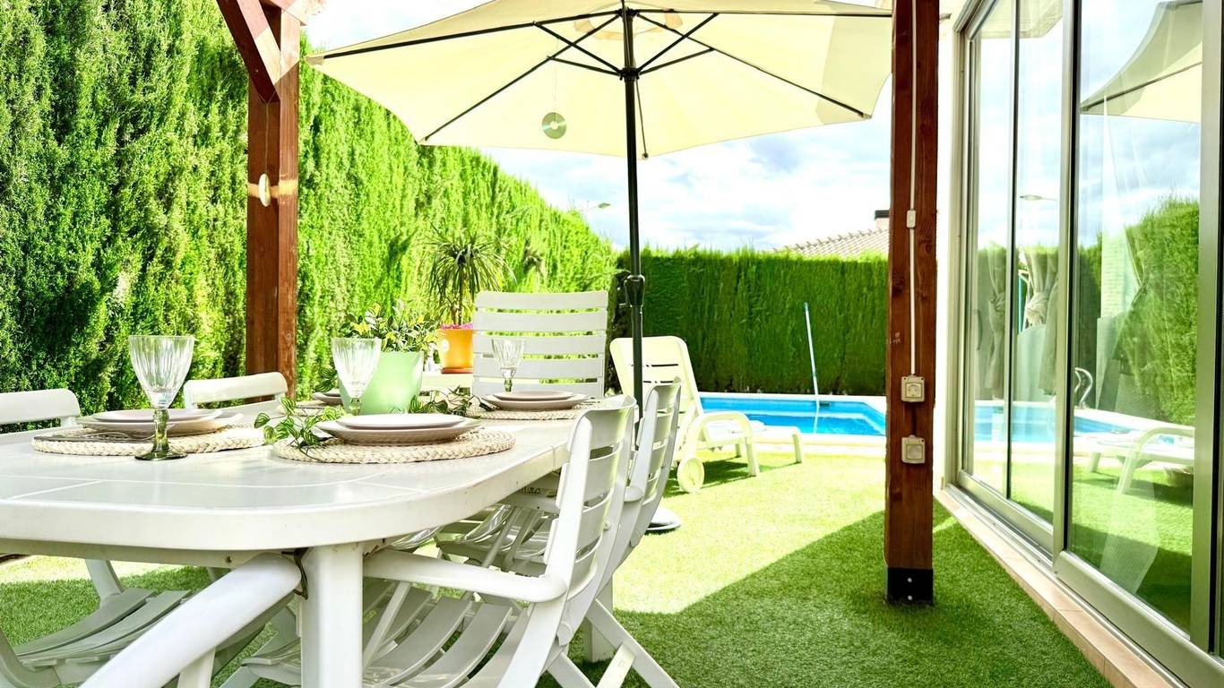 En el exterior, la vivienda cuenta con parcela privada con piscina, zonas de descanso y espacio suficiente para disfrutar del aire libre con total privacidad.