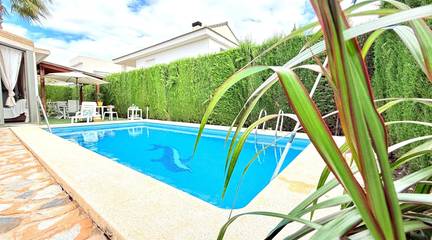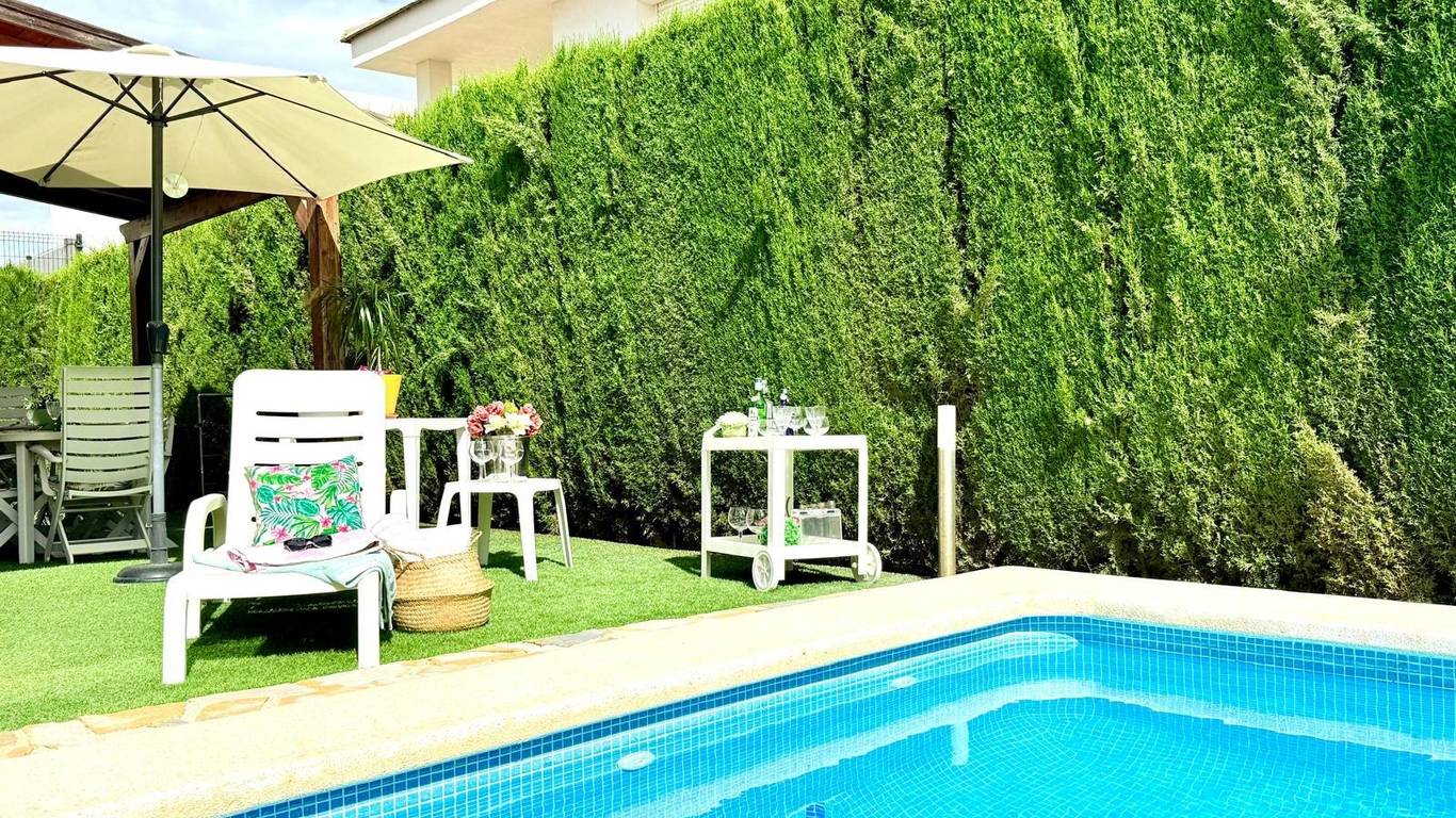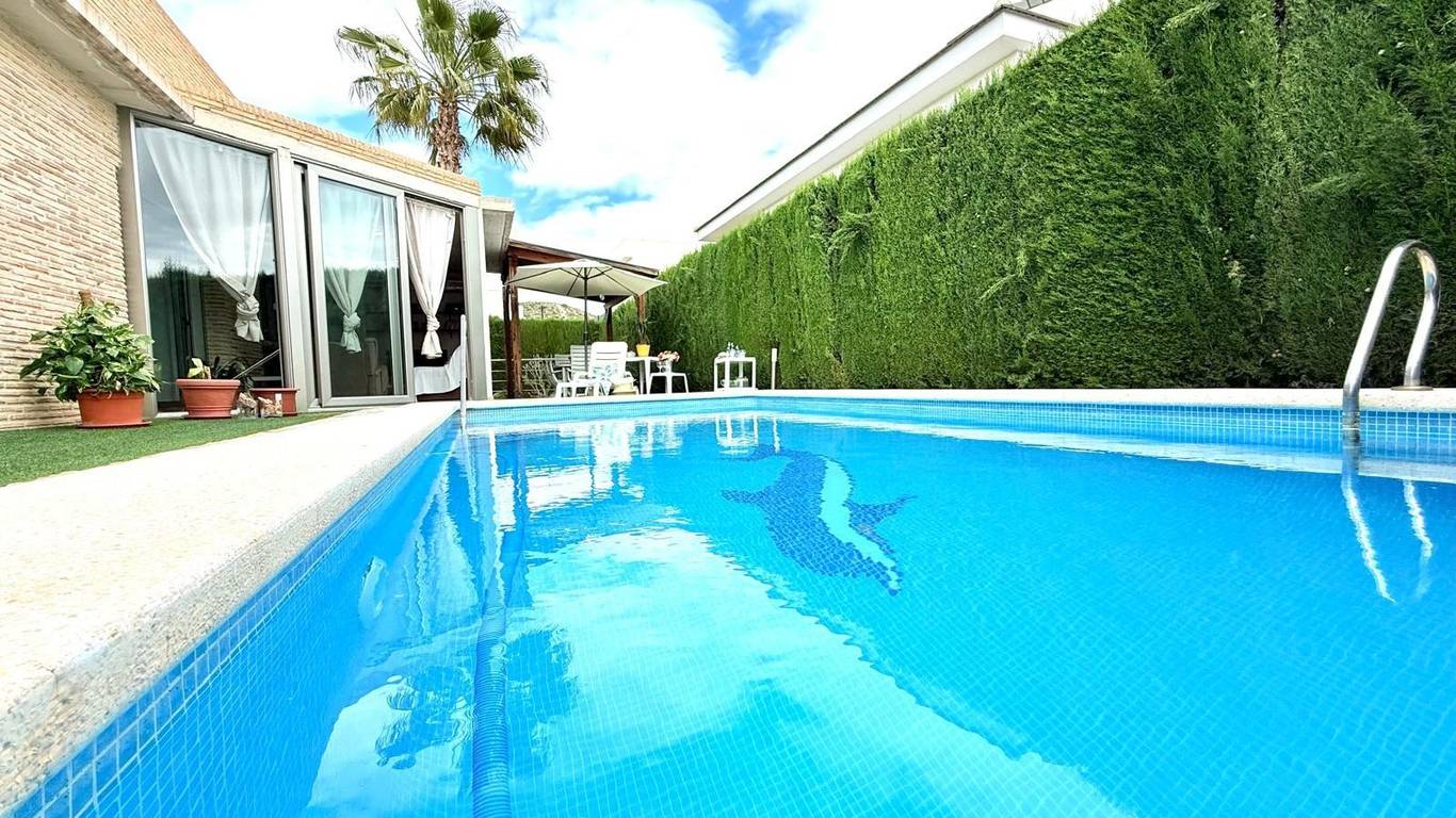 Chalet independiente en la urbanización La Alcayna, con más de 400 m construidos sobre una parcela de 600 m con piscina privada, ideal para quienes buscan amplitud, privacidad y múltiples espacios para disfrutar en familia.