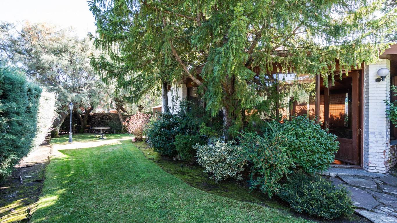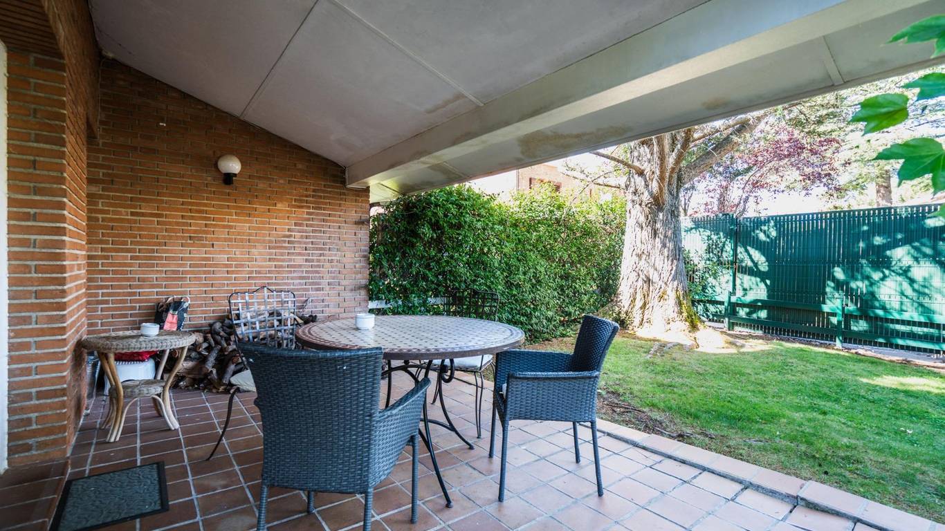 EXCLUSIVE SEMI-DETACHED LEVITT VILLA IN A PREMIUM GATED COMMUNITY WITH SOCIAL CLUB AND 24H SECURITY IN BECERRIL DE LA SIERRA Stunning corner semi-detached Levitt villa in the prestigious Montellano residential complex in Becerril de la Sierra, an exclusive setting at the foothills of the Sierra de Madrid with 24-hour security, social club, restaurant, several sports courts, swimming pools, childrens playground, and direct access to a privileged natural environment. The property, distributed over three floors, offers spacious and bright areas. On the ground floor, you will find a large living-dining room with a fireplace and access to a terrace overlooking the garden, an independent fully furnished and equipped kitchen, one bedroom with a full bathroom, a guest toilet, and a functional laundry room. From the entrance hall, a glass corridor leads to an impressive annex building: a spectacular party and family gathering room with high wooden ceilings, large windows, fireplace, and guest toilet, perfect for enjoying time with family or friends. The first floor features the master bedroom with en-suite bathroom, along with two additional bedrooms that share another bathroom, all with built-in wardrobes. The top floor offers a spacious attic with a fireplace, creating a cozy and versatile living space. The villa is surrounded by a well-kept garden with a terrace that provides privacy and charm in every corner. It also has electric heating, ensuring ideal climate control throughout the year. Its location within Montellano guarantees peace, security, and quality of life, with a bus stop inside the community and all essential services nearby. Undoubtedly, this is a unique property that combines elegance, spaciousness, and nature in one of the most exclusive residential areas of the Sierra de Madrid. This advertisement is not binding and may contain errors. It is shown for informational purposes only and does not constitute a contractual document.